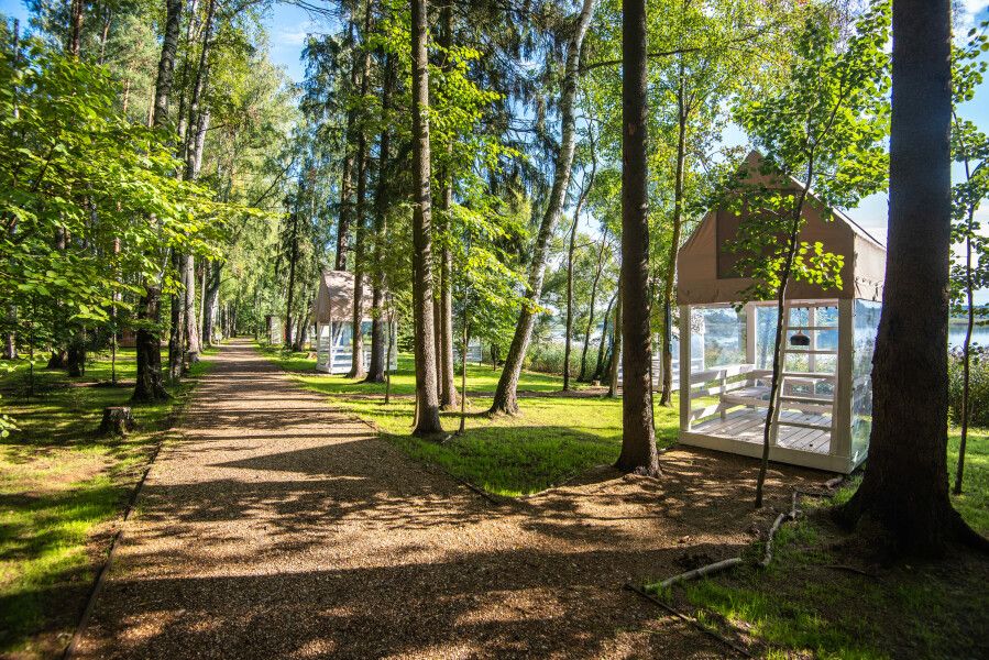 Глэмпинг «Берег желаний» расположен в деревне Шевлино, на берегу Истринского водохранилища.