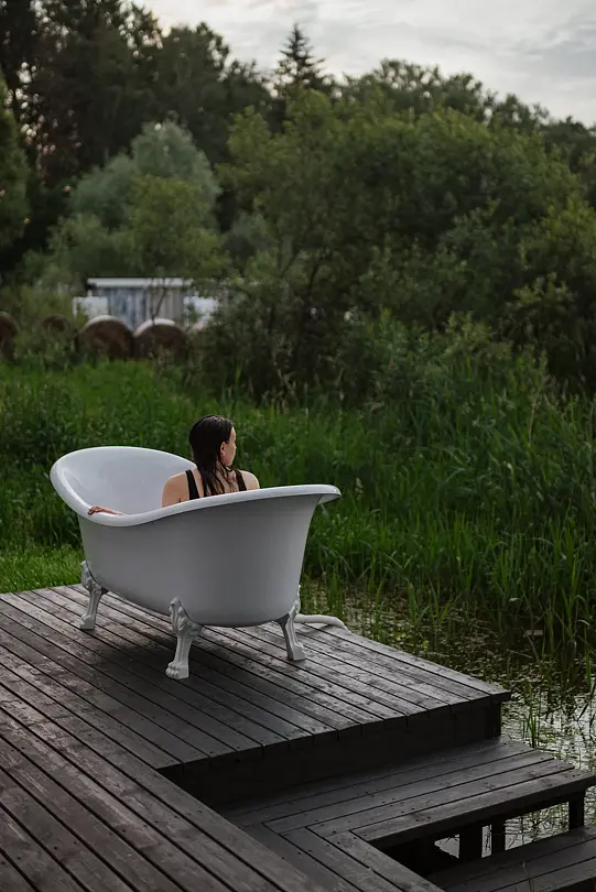Два горячих чана на дровах — малый, вместимостью до 6 человек, и большой, вместимостью до 10 человек. Чан можно арендовать как вместе с баней, так и отдельно,