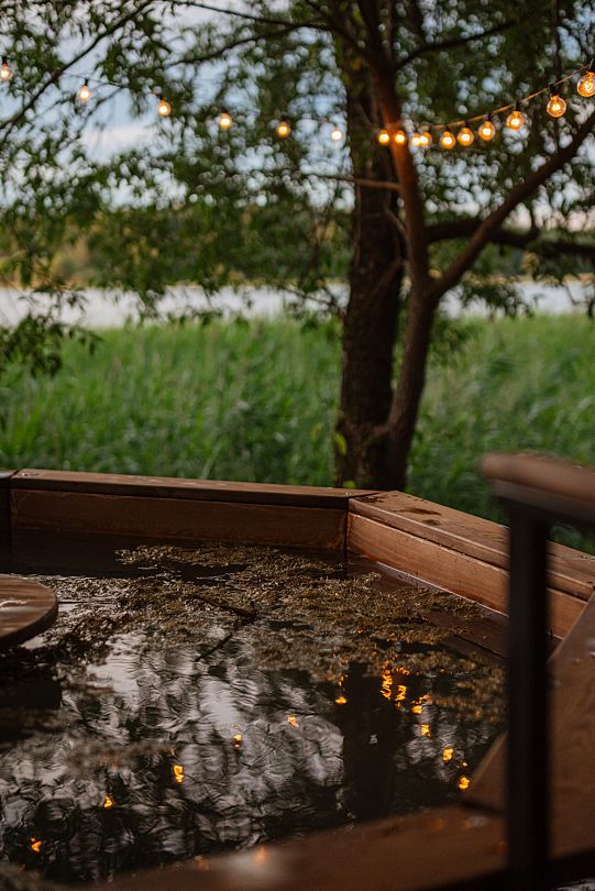 Большой чан расположен рядом с гранд-баней, а малый чуть в стороне. Оба чана огорожены, чтобы была атмосфера приватности.