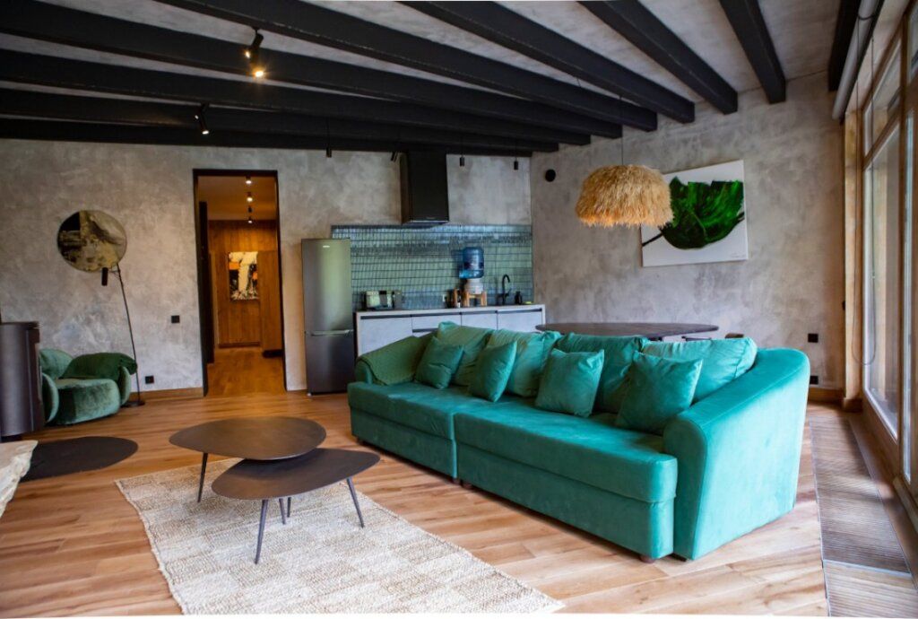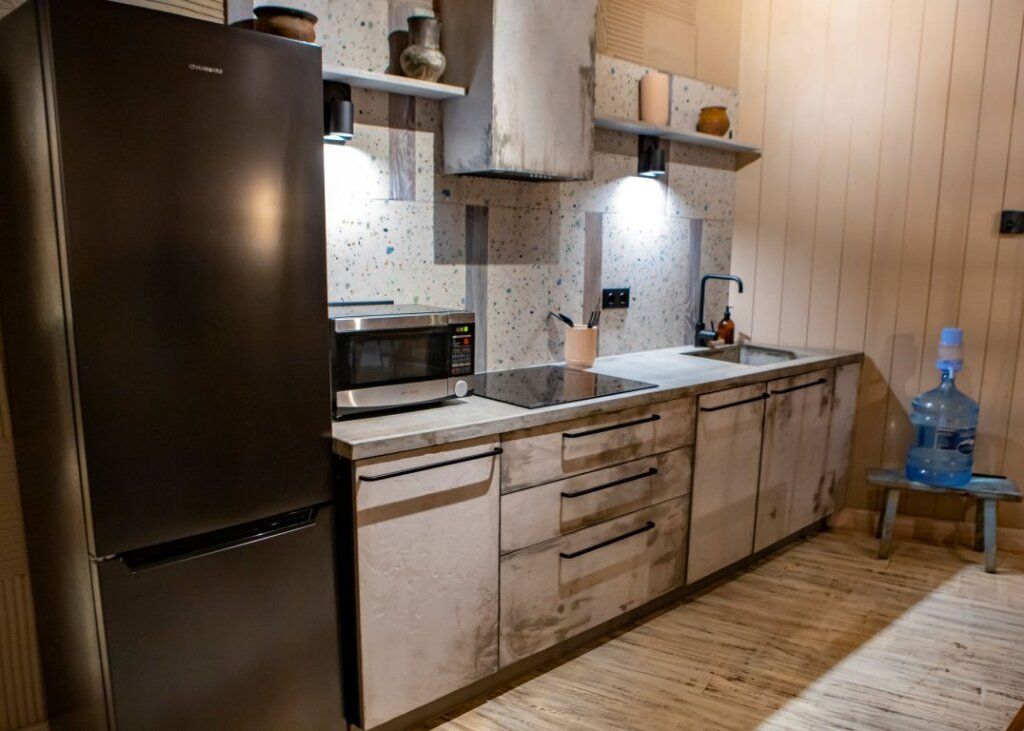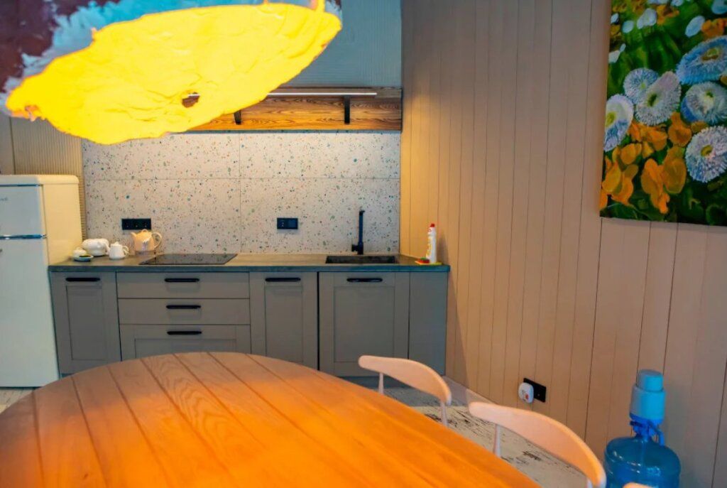 - Кухня: холодильник, варочная панель, посудомоечная машина, чайник, шампуры.