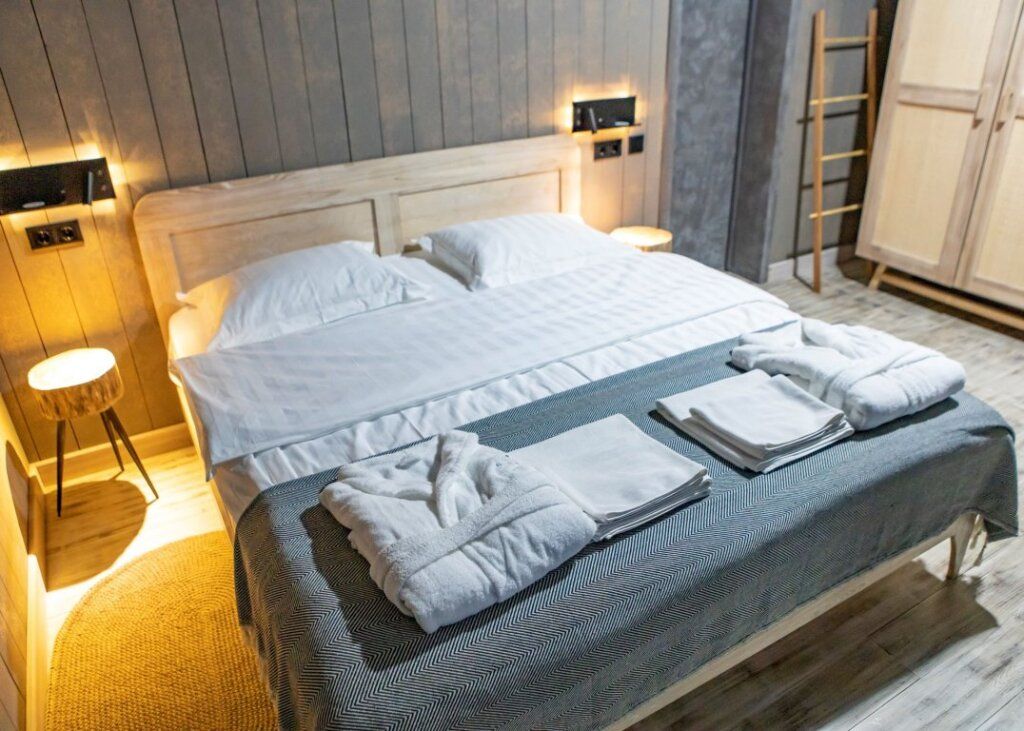 - халаты в соответствии с фактически проживающими гостями, но не более количества гостей на основных местах для выбранной категории коттеджа;