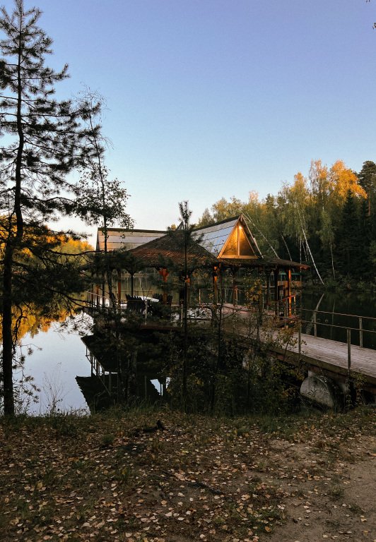 Среди услуг для красоты и здоровья — финская сауна с бассейном и дровяная баня с купелью. На территории есть детская площадка, беседки с мангальной зоной. Гости могут порыбачить и приготовить свой улов самостоятельно, либо доверить это поварам ресторана.