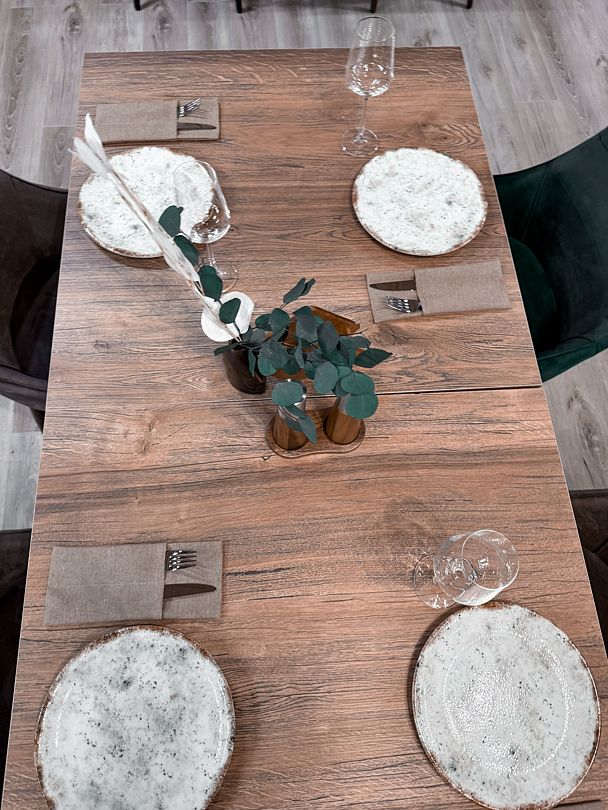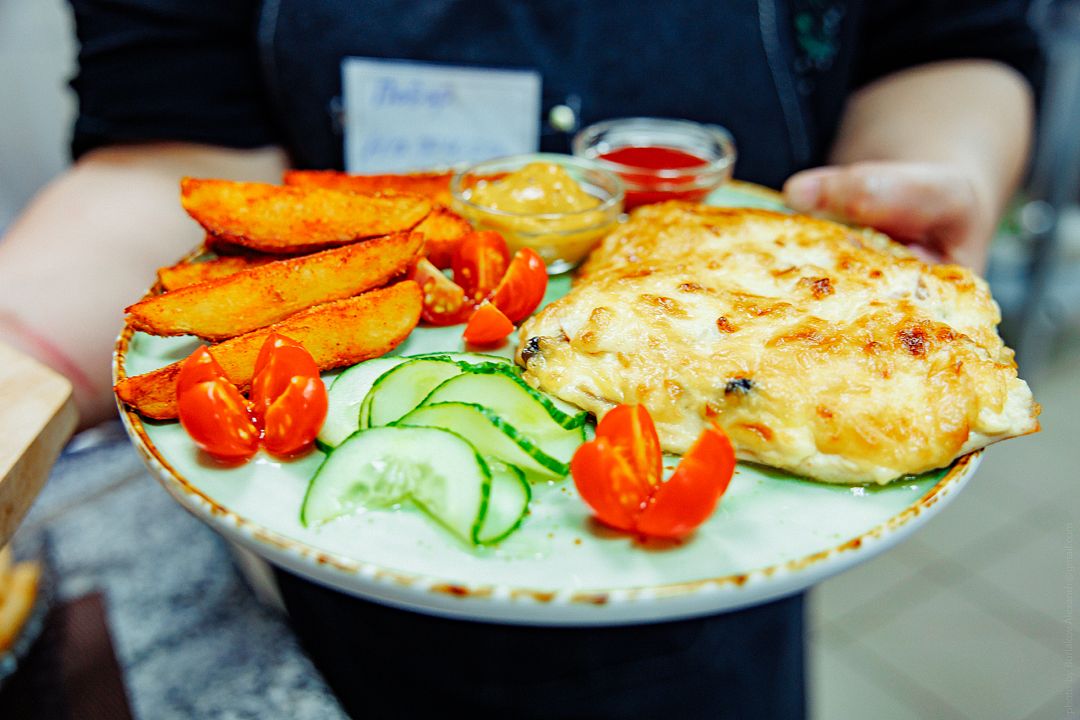 - посуда (тарелки, чашки, вилки, ложки, нож, пивные бокалы, рюмки);