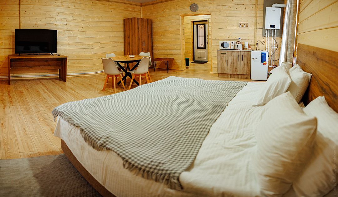 Среди услуг: баня с зоной отдыха, купель, мангальные зоны, ресторан-бар и собственная ферма-зоопарк, где можно пообщаться и покормить животных, а также покататься на лошадях под присмотрам инструктора.