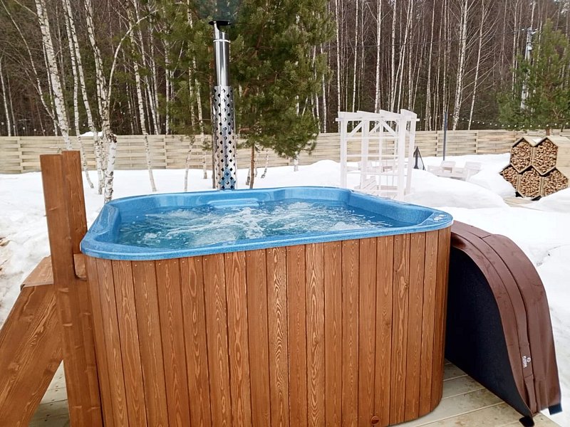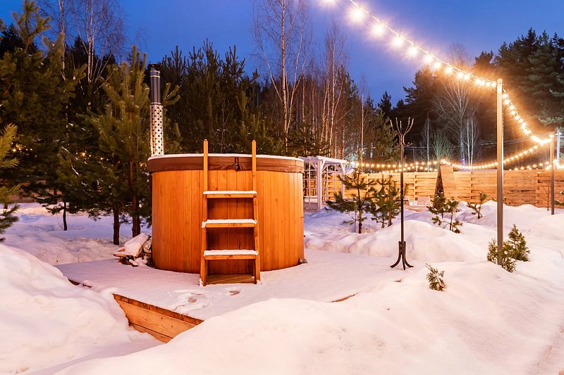 Вода в чане нагревается до комфортной температуры. Чан с гидромассажем и подсветкой. Необыкновенное удовольствие, окунувшись в теплый чан, любоваться ночным небом. Ритм жизни замедляется и появляется ощущение «здесь и сейчас».