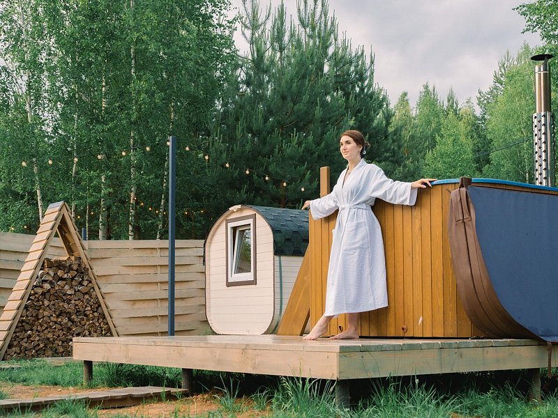 В домах «Пчёлка» и «Жемчужина» оборудованы хаммамы и дровяные чаны, доступные за дополнительную плату. Домики «Гармония» и «Пчёлка» рекомендуется выбрать, если Вы хотите попариться в баньке.
