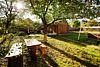 Также есть двор, украшенный уличными лампами-гирляндами. Во дворе: деревянный стол с скамейками, качели, зона барбекю: мангал и печь для казана, крытая беседка, сад, плодовые деревья, пруд, огород, парковка на несколько машин. Гостям предоставляются шампура и казан по предварительному согласованию и за дополнительную плату. Есть место под шатёр для гостей.