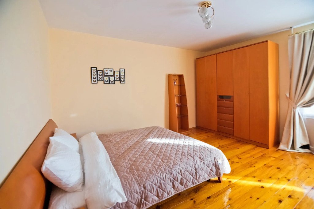 4 отдельных спальни: 3 с двуспальными кроватями 160х200, 1 спальня с двуспальной кроватью 160х200 и односпальной кроватью 90х200, шторы блэк-аут.