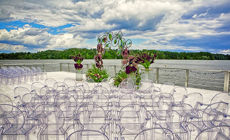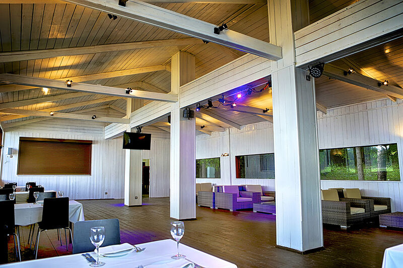 Вместимость шатра — до 250 персон при комфортной рассадке! 500 кв.м торжества в шатре на причале с потрясающим видом на водный фотопейзаж! Гости могут арендовать банкетный ресторан или шатёр у воды, в котором есть отдельная гримёрная зона для артистов и собственное помещение под кейтеринг. Основной зал ресторана, рассчитанный на 80 персон оборудован современным комплектом звуковой и световой аппаратуры, с возможностью трансляции видео на телеэкраны, а праздничное меню удивит всех разнообразием блюд!
