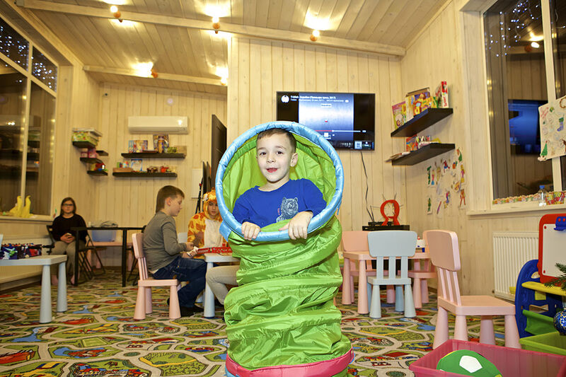 Игровой клуб имеет мягкое напольное покрытие, отдельную зону для переодевания обуви и верхней одежды. Также в детскую комнату регулярно доставляется индивидуальная питьевая вода и сок. Помещение оборудовано чистым санузлом и умывальником, поэтому гостям не придется переживать о комфорте детей.