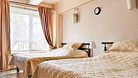 Уютный однокомнатный номер с ванной комнатой и двуспальной кроватью предназначен для одноместного или двухместного проживания. Одна кровать размера king-size.