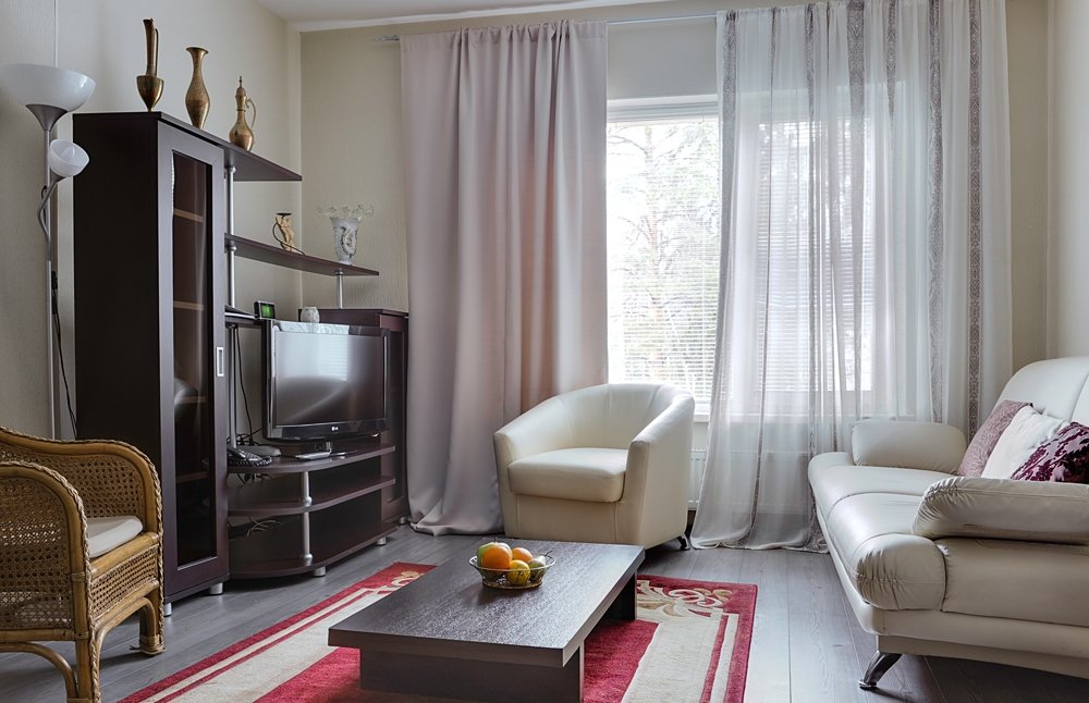 Гостиная и 1 спальня ( 1 двусп.кровать + диван в гостиной ,душевая комната)