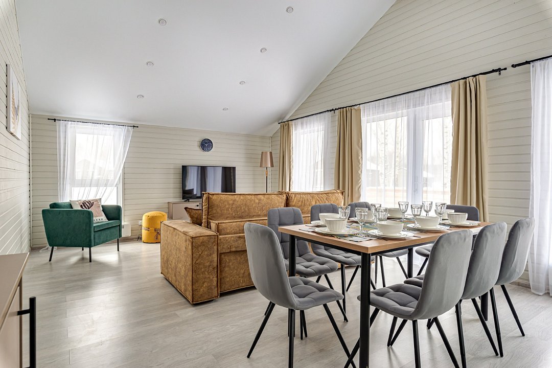 Дом — идеальное место для отдыха от городской суеты. Здесь гармонично сочетаются: комфорт современного жилья; уют домашнего пространства; красота окружающей природы. Основные параметры: вместимость до восьми человек; спальни три комнаты; санузлы два; минимальное бронирование две ночи; заезд: с 16:00; выезд: до 12:00 (ранний заезд и поздний выезд — по согласованию).