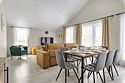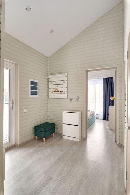 Из гостиной открывается выход на террасу, где вы сможете насладиться утренним кофе или романтическим вечерним созерцанием звезд. Описание спален: первая спальня — двуспальная кровать (160х200), удобный матрас и вместительные места для хранения, вторая спальня — две одноместные кровати, третья спальня — диван, который легко преобразуется в двуспальную кровать.