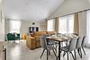 На кухне вас ждет большой обеденный стол, вся необходимая посуда, микроволновая печь, варочная панель и чайник, кофеварка. Гостиная с просторным диваном, телевизором и удобным креслом станет отличным местом для вечернего отдыха. Умная колонка Алиса для вас!