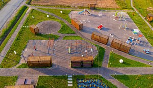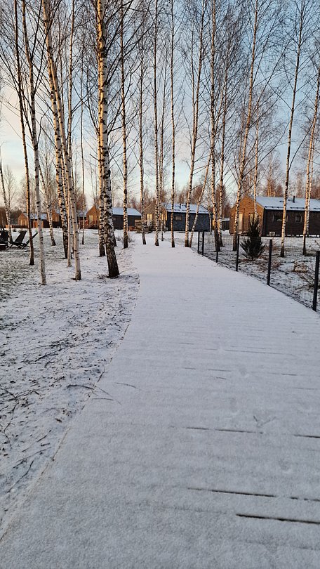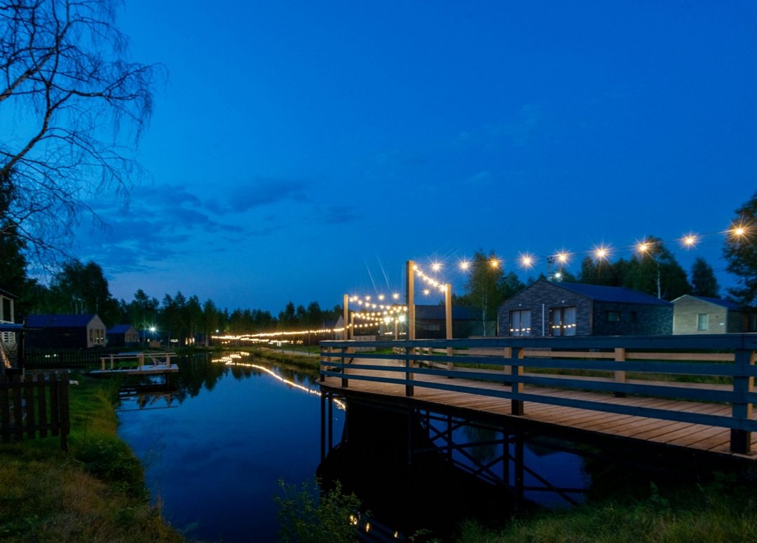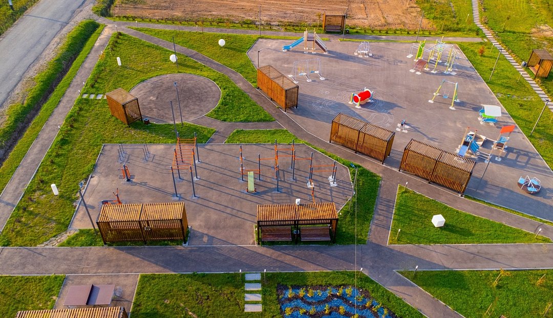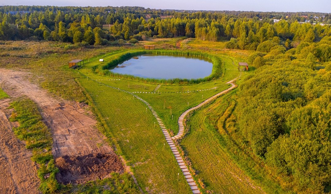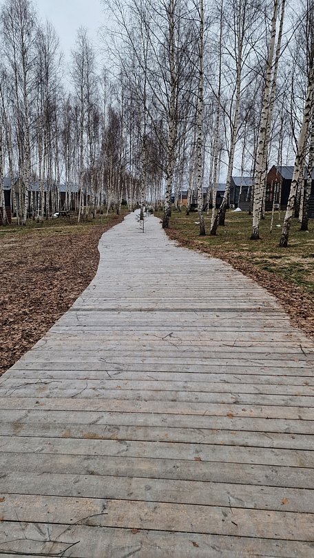 В поселке проложены пешеходные дорожки, включая экотропу, ведущую через лес к реке.