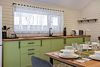 Кухня полностью оснащена всем необходимым инвентарем и бытовой техникой для приготовления еды и сервировки стола.