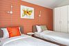 Первая спальня: двуспальная кровать (160×200); удобный матрас; вместительные места для хранения. Вторая спальня: две одноместные кровати. Третья спальня: диван, трансформируемый в двуспальную кровать.