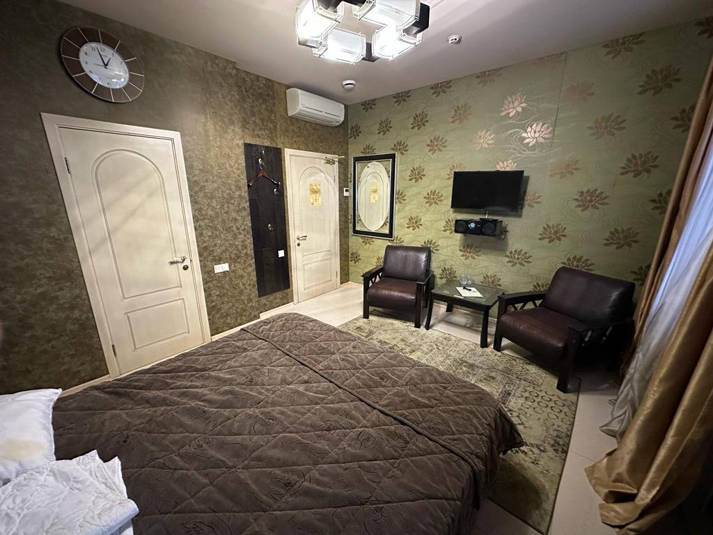 Номер оформлен со вкусом и оснащён всем необходимым для отдыха после насыщенного дня. В номере есть DVD-плеер, телевизор и халат. Комплектация номера зависит от выбранной категории.