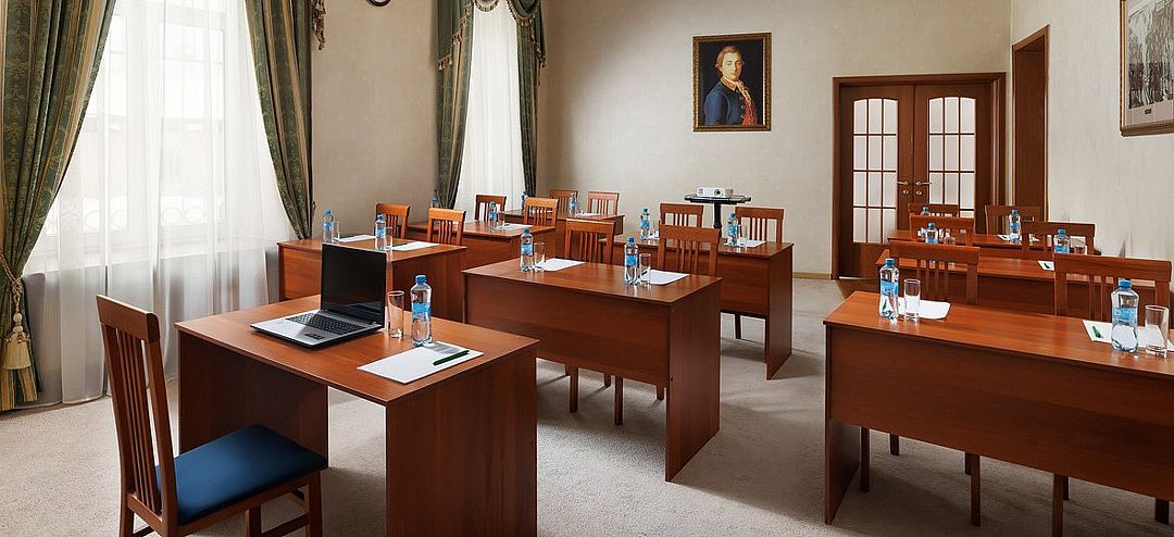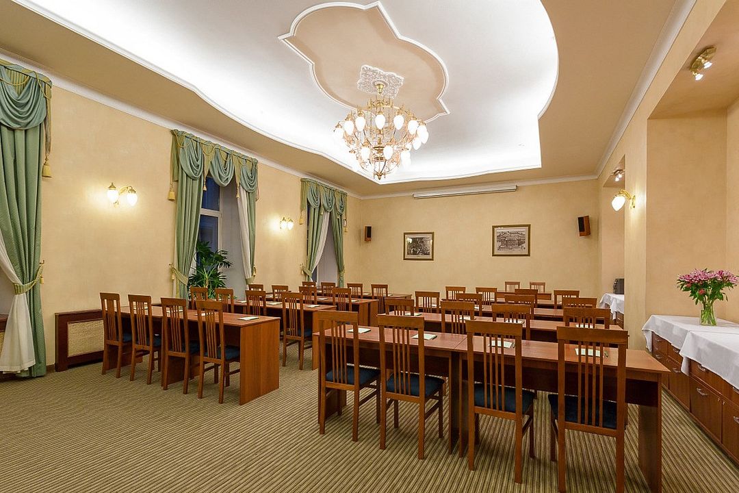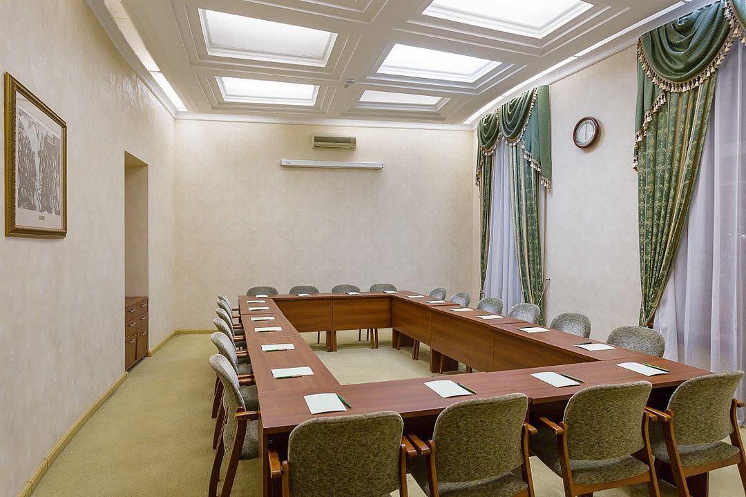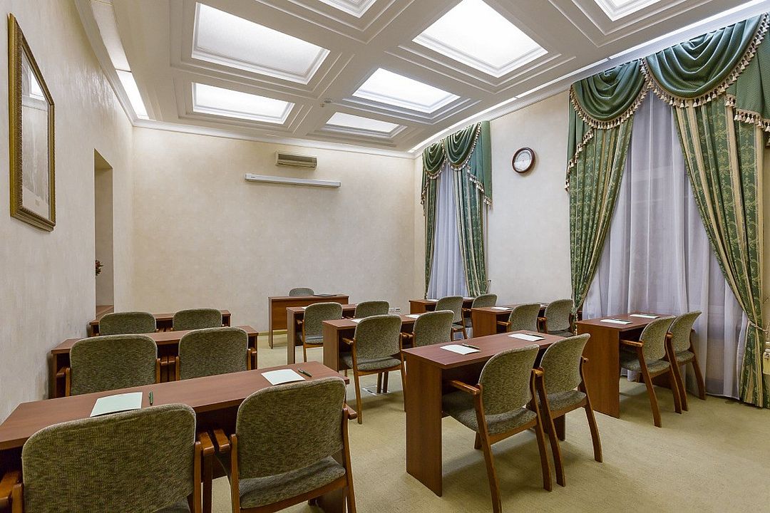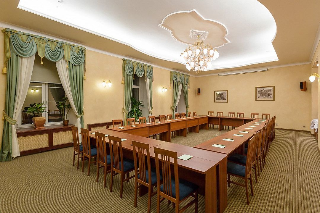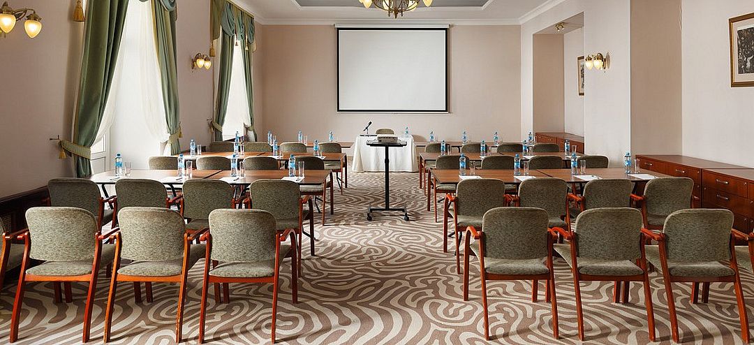 Конференц-зал «Голицын», площадью 58 м², идеально подходит для проведения семинаров, презентаций и деловых встреч. В зависимости от рассадки зал вмещает: