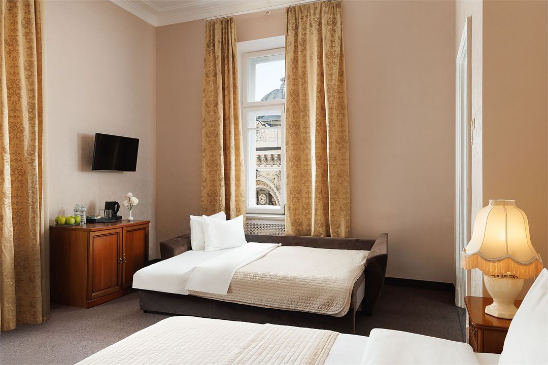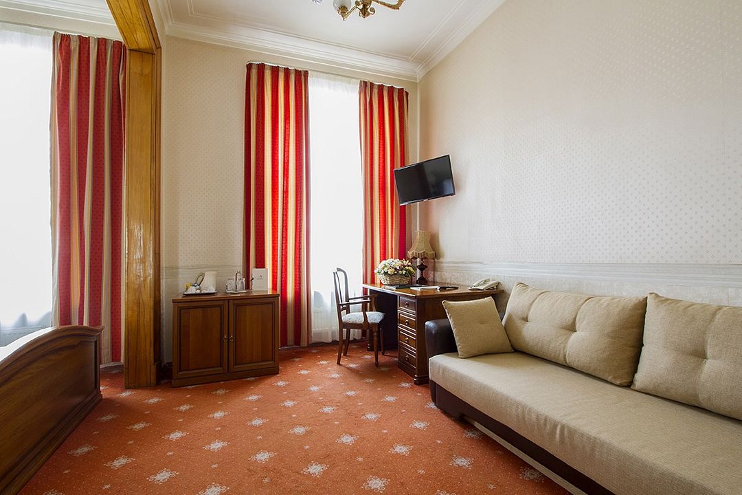 Путешествие в одиночку3,5 звездыСкажу сразу, что на заявленные 4 звезды гостиница не особо тянет, скорее на 3,5. С одной стороны очень классная локация, близко к центру, удобно. Само здание и антураж очень атмосферные - высокие потолки и тд. С другой стороны глаз все время цепляется за какие-то мелочи - сколы на плитке в ванной, щели по периметру двери (ну не то чтобы огромные, но ночью свет из коридора видно), севшие батарейки в пульте и тд. Вроде и не критично, но и для 4 звезд не солидно..
