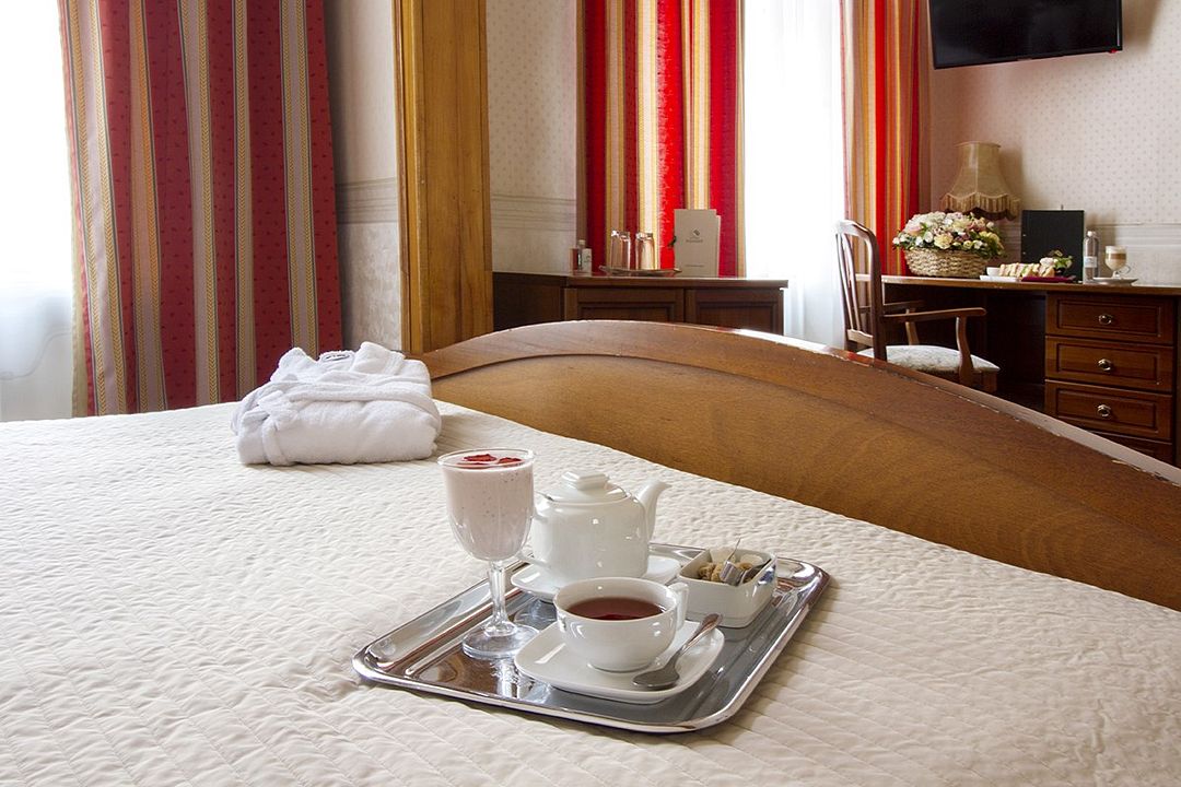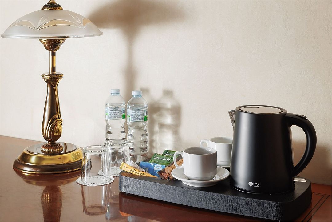 телевизор, Wi-Fi, холодильник, кондиционер, светильник, фен, ванная комната, банные полотенца, тапочки, косметические средства, две односпальные или большая двуспальная кровать, гипоаллергенное белье, тумбы, стулья, шкаф для одежды, вешалки, письменный стол, зеркало, письменные принадлежности, чайный набор, обслуживание номеров, сейф, чайник, унитаз, раковина, питьевая вода, ковровое покрытие, вид на город, высокие потолки, стаканы, без питомцевВ гостиничном номере