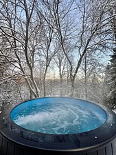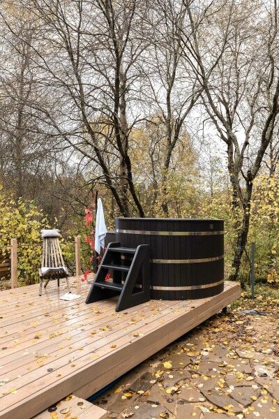 Гостевой дом «Chalet Forest» предлагает уникальную возможность для полноценного расслабления на свежем воздухе: подогреваемая купель на террасе вмещает до четырех человек, создавая идеальные условия для расслабляющего времяпровождения.