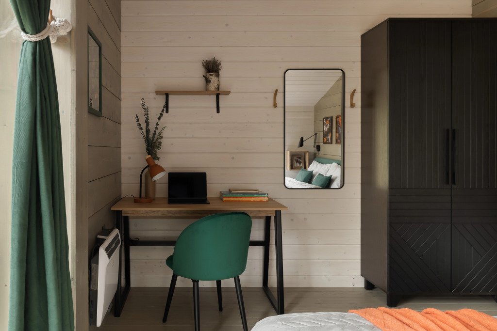 - комната с телевизором, игровой приставкой, выходом к купели, шкафами, рабочим столом и диваном со спальным местом 135х208;