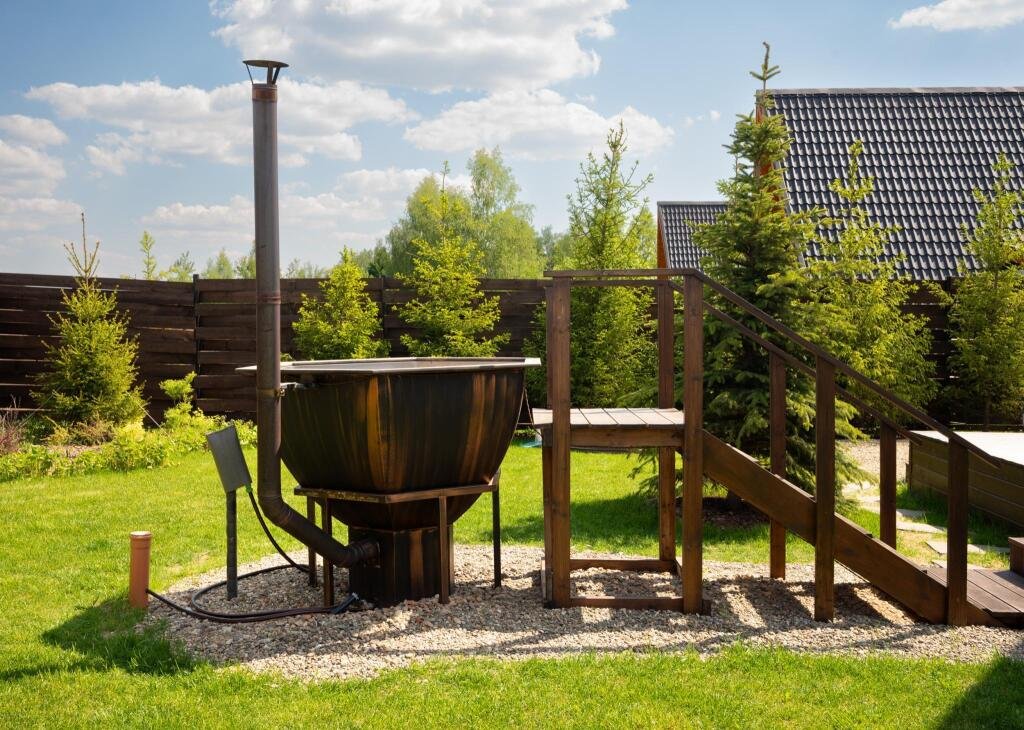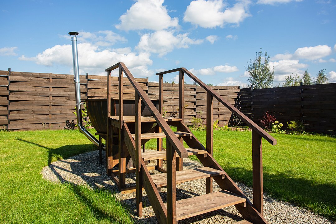 На территории дома отдыха находится банный чан, в котором с комфортом могут разместиться пятеро гостей. Также есть баня, которая топится перед приездом отдыхающих.