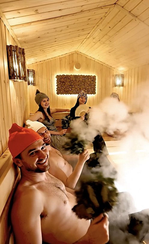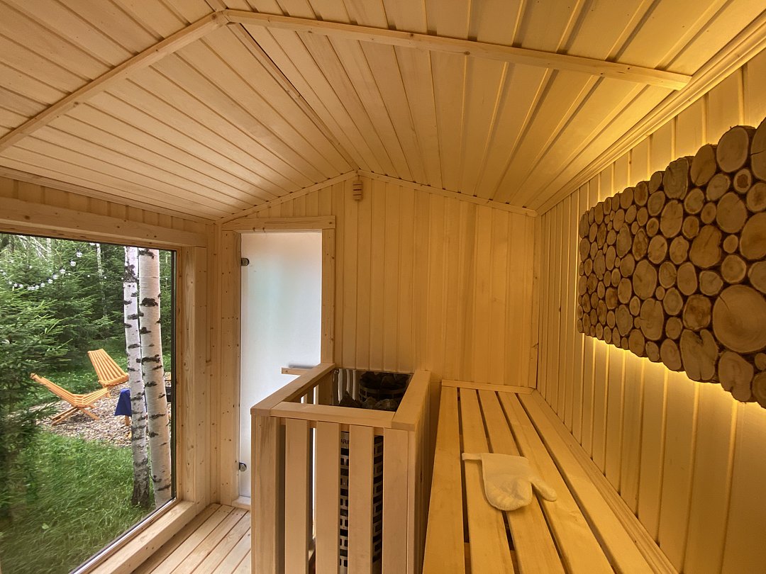 Инфраструктура: зона отдыхаНа территории находится уютная баня, где можно расслабиться в парной или в комнате отдыха с панорамными окнами, открывающими живописные виды на природу. Целебный пар создает идеальные условия для восстановления сил после активного дня отдыха.