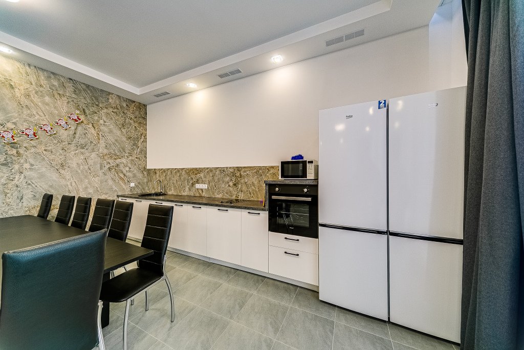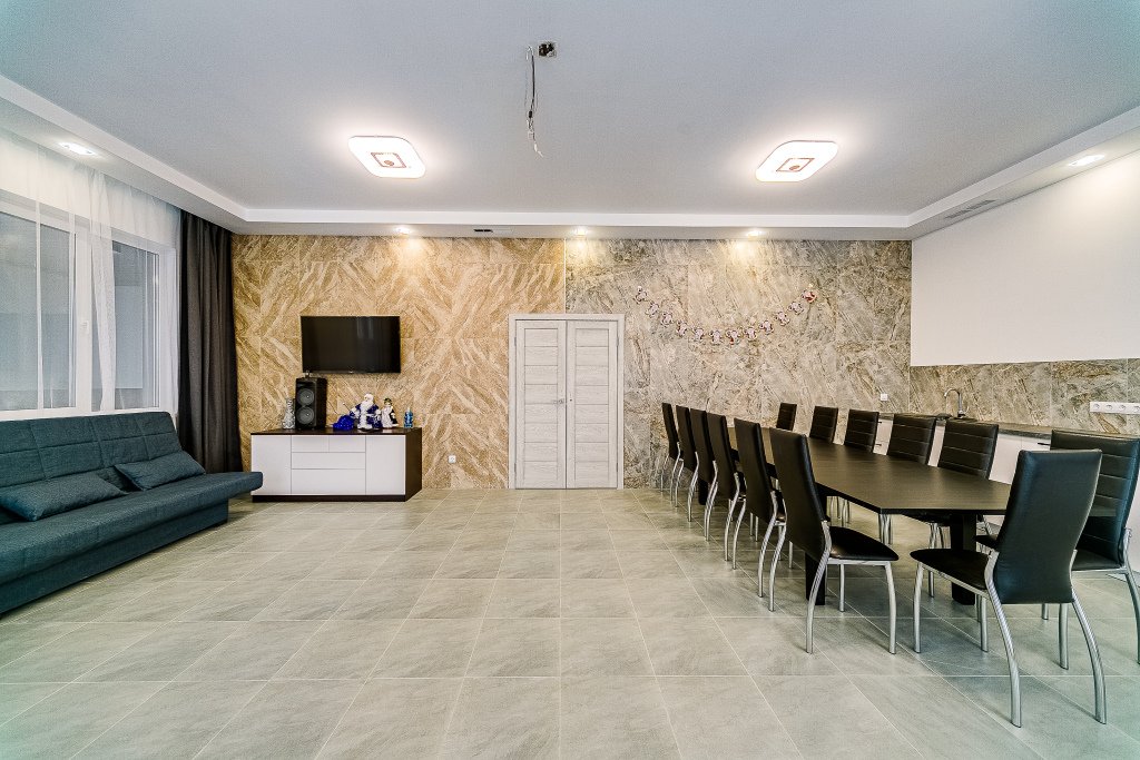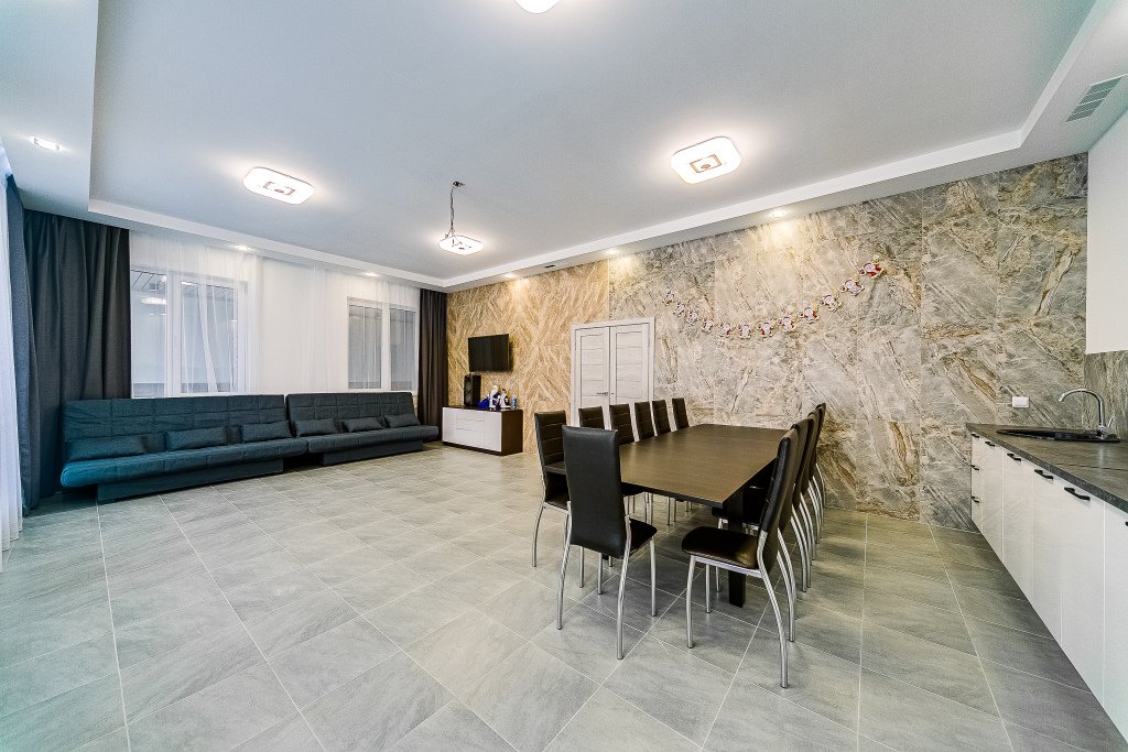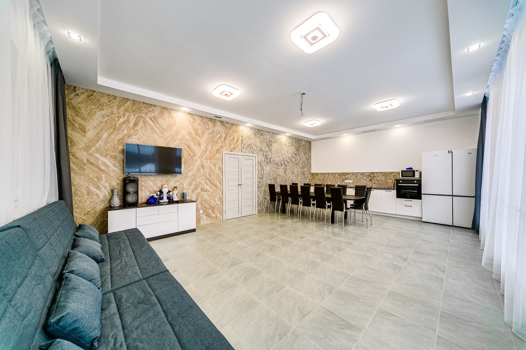 К удобству гостей — 5 спален; кухня-гостиная площадью 45 кв. м; 3 санузла, два из которых с душем и один без; комната для курения. Общее количество спальных мест — 16. В спальных комнатах — двуспальные кровати, в гостиной — два раскладных двуспальных дивана.