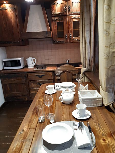 Номер с удобствами. Посуда сервировочная (ложки, вилки , чашки и т.д., посуды для приготовления Нет.