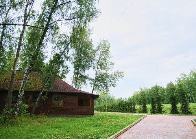 Когда въезжаешь в ворота эко-отеля, попадаешь в удивительный мир, где начинается отдых. Оказываешься на огромной территории, которая занимает более 10 гектаров. Вокруг — заповедный берёзовый лес и прекрасные виды на берега реки Оки.