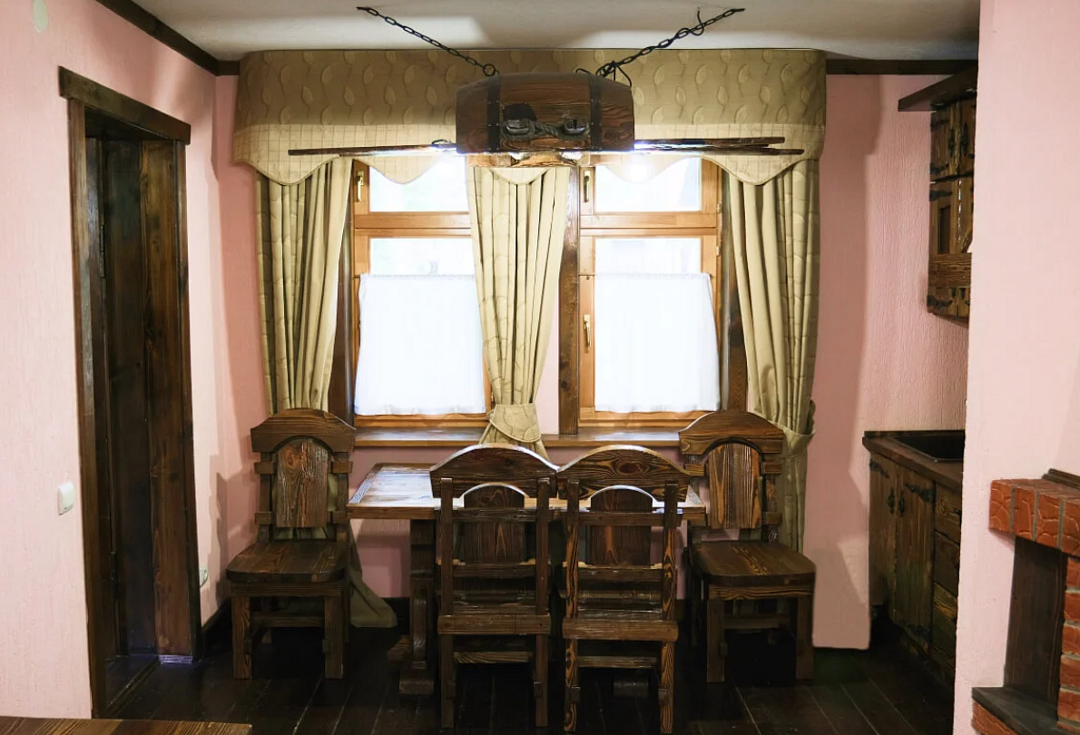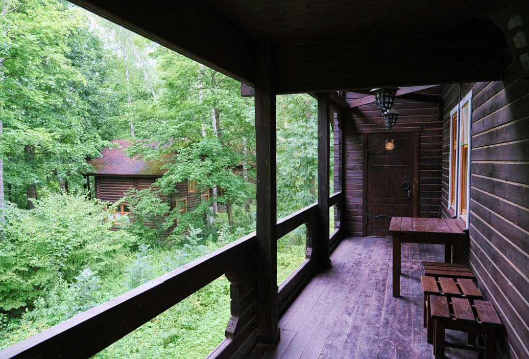 Отель состоит из нескольких деревянных домов, построенных с использованием экологически чистых материалов. Здесь есть уютный семейный ресторан, площадка для мероприятий, множество прогулочных зон и мест для отдыха, оформленных в сказочном стиле. В отеле быстро забываешь о рабочей неделе и утомительной дороге и погружаешься в атмосферу спокойствия и гармонии с природой.