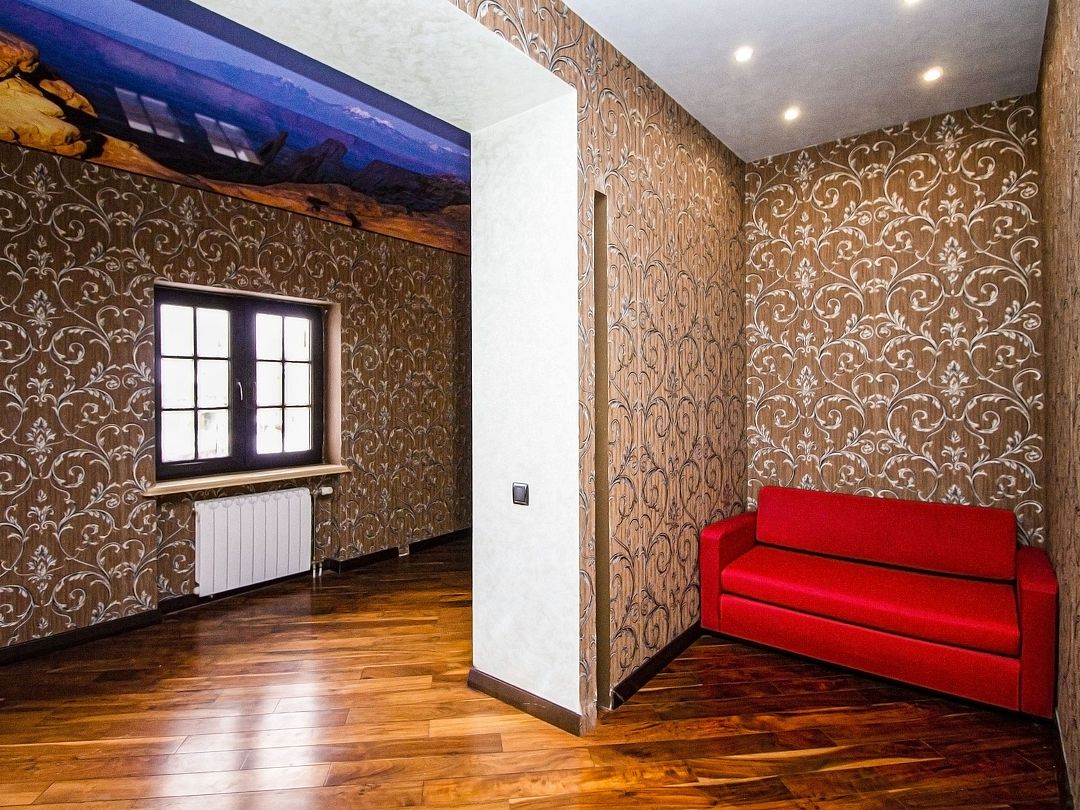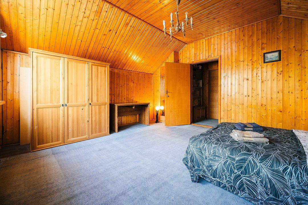 Дом 2-й этаж 80 м²: 2 спальни, большой зал. Сауны и бассейна в этом доме нет.