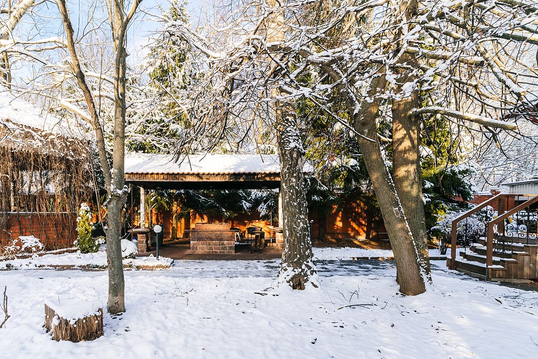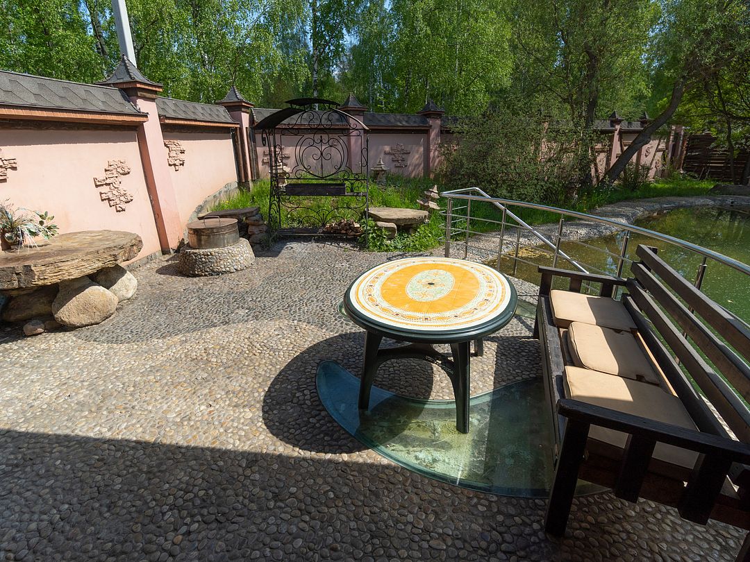 Большая частная территория 30 соток, богатая Флора, редчайшие растения, огромные валуны, привезенные из Карелии. Крытый шатер для проведения банкета до 70 человек. Три зоны барбекю, тандыр.