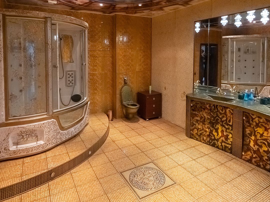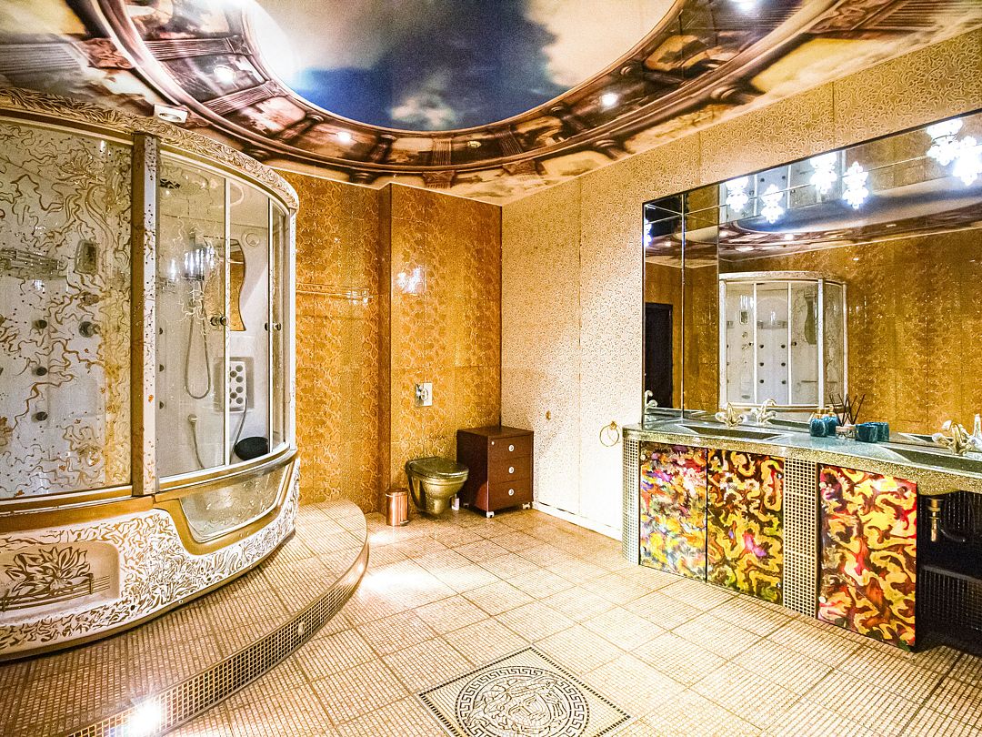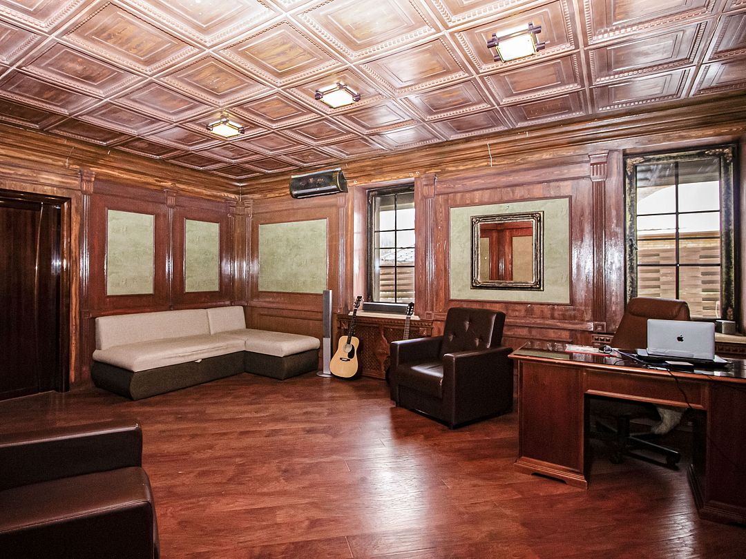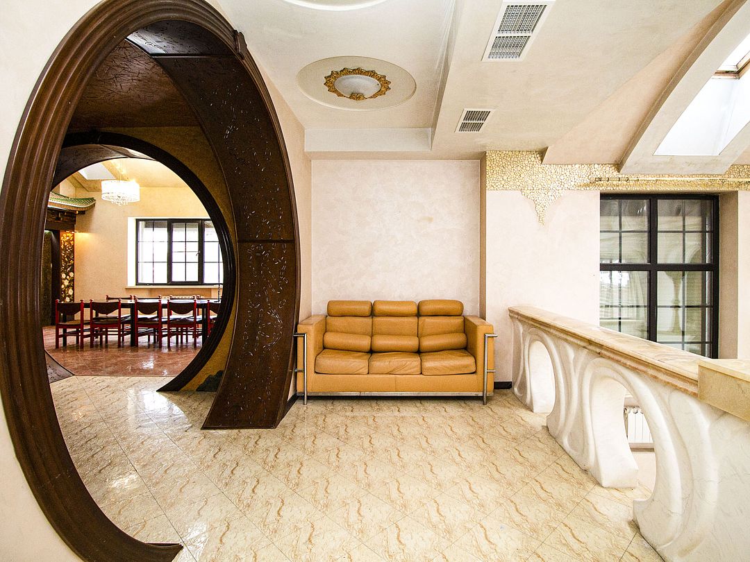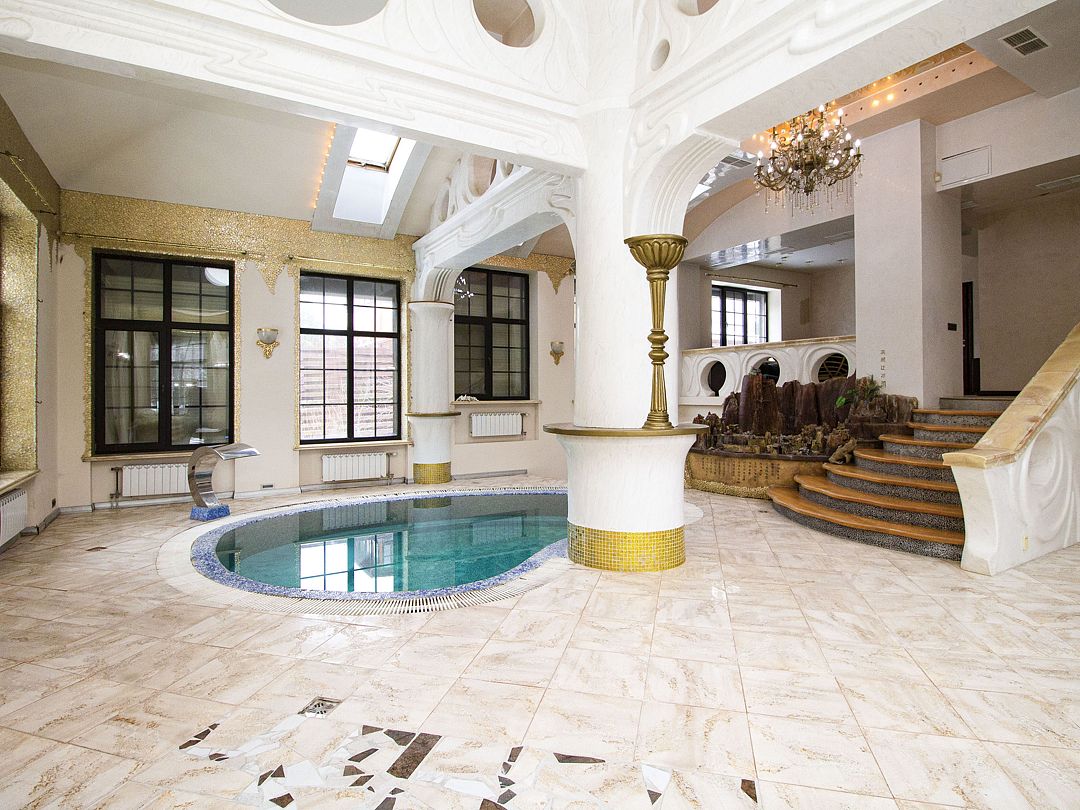 В основном коттедже площадью 750 м²: большой холл (танцпол), обеденная зона, полностью оборудованная кухня 35 м², 3 ванных комнаты и гостевой санузел, 4 больших спальни, караоке зона, бассейн, лаунж зона 100 м² (кальянная), террариум, детская игровая зона, сауна, винный погреб, прачечная и комната для охраны.