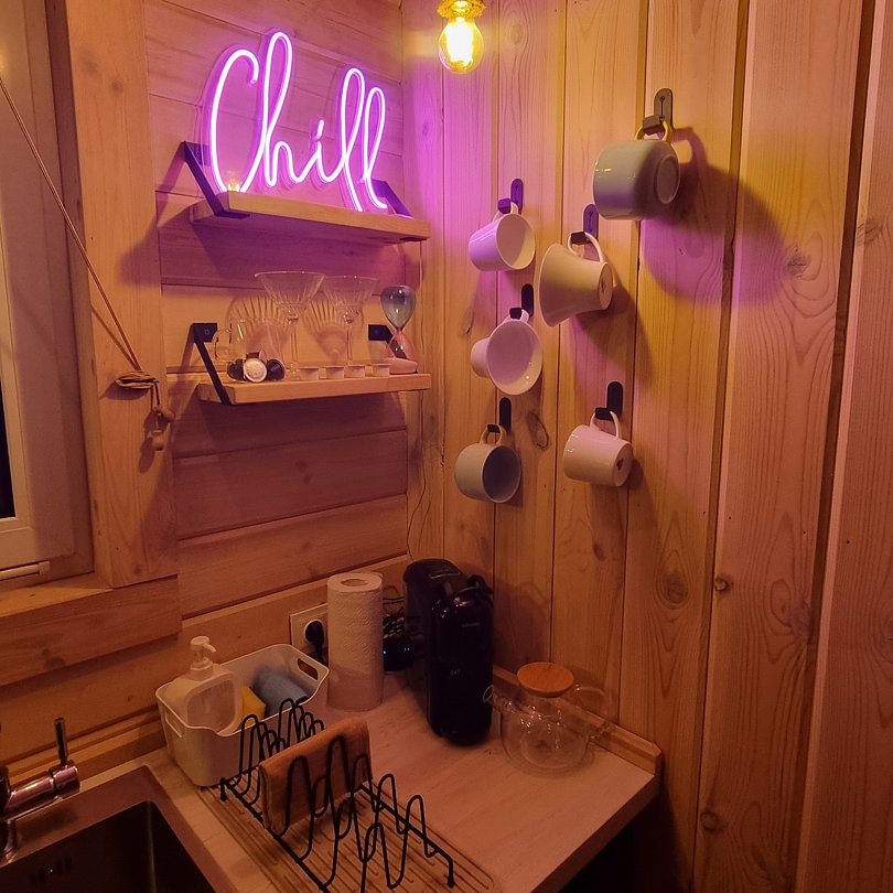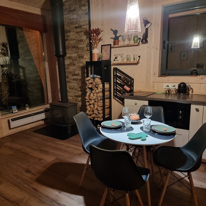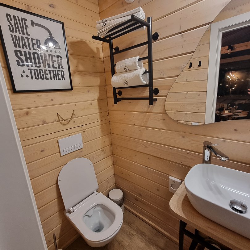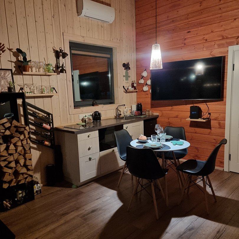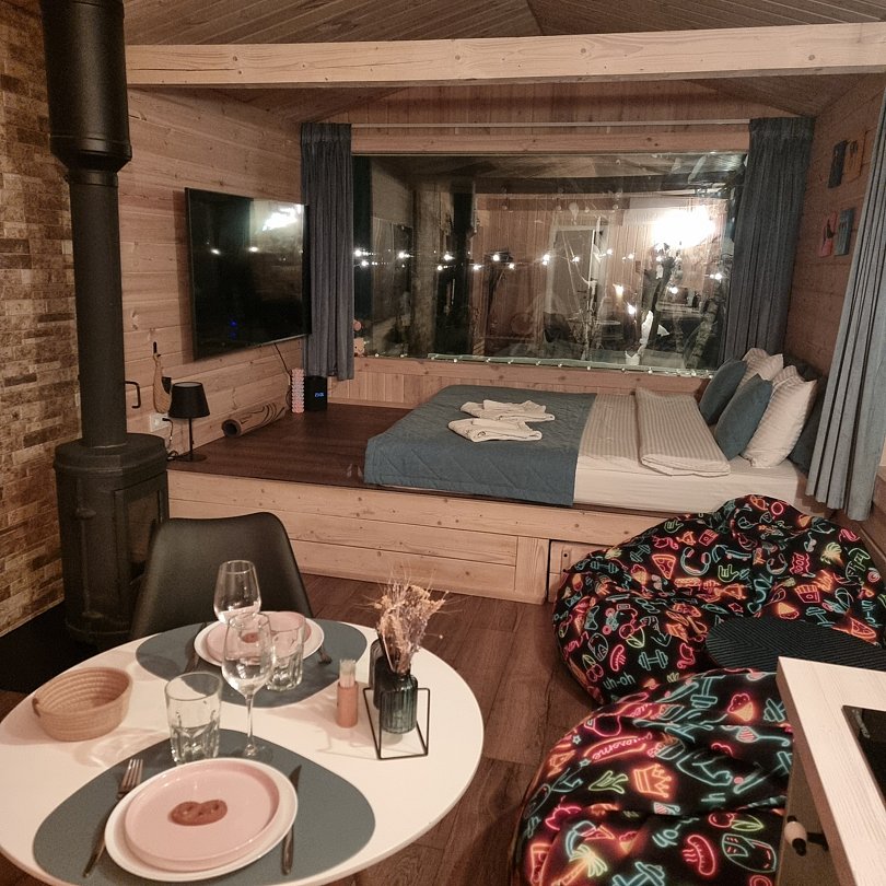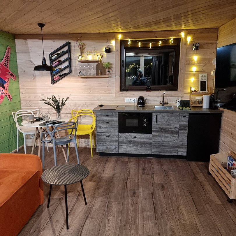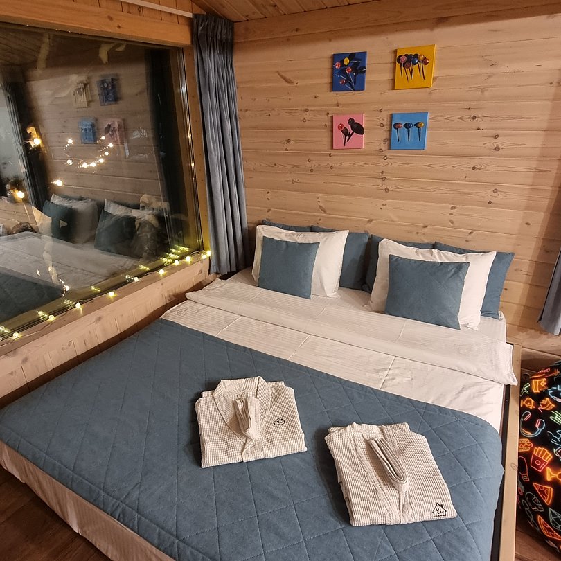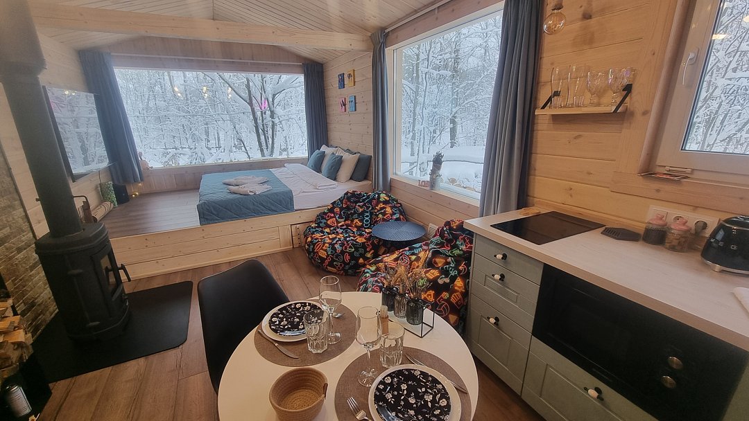Вас ждёт три уютных домика, в каждом из которых есть полный спектр удобств, привычных современному человеку, что делает проживание максимально комфортным: кухня, техника, Wi-Fi санузел и удобная мебель. А стильный интерьер и панорамный вид из окна добавят отдыху эстетики.