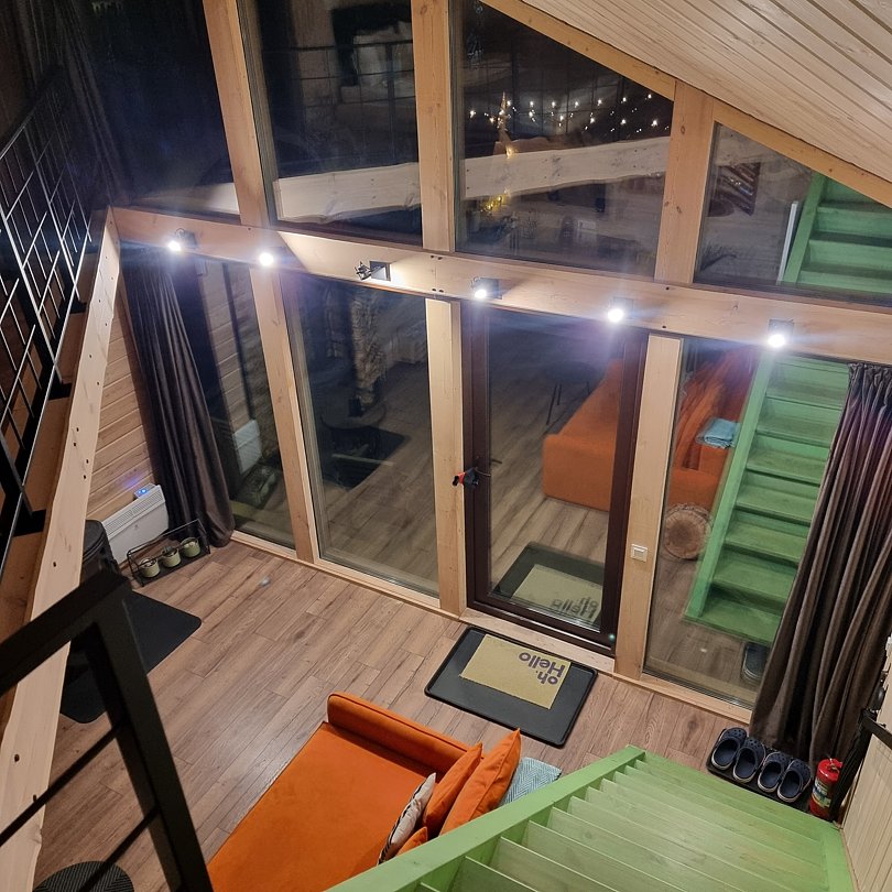 Двухуровневый люкс с большой панорамой на природу! Домик из pinterest! С камином, большим TV и всем необходимым для комфортного отдыха.