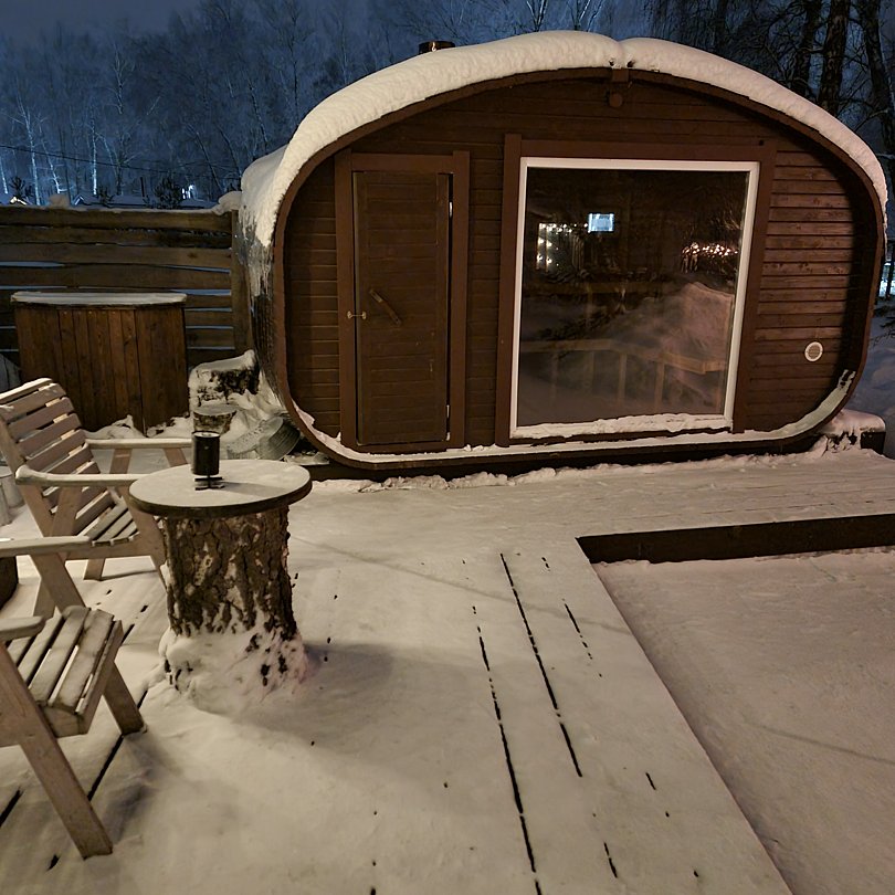 У домика своя индивидуальная Банька с холодной купелью (за дополнительную плату), а также на территории большой Чан (за дополнительную плату)