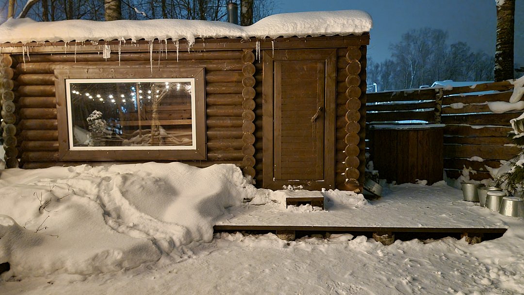 Рядом с каждым домиком есть чан и собственная банька, доступные за дополнительную плату.