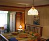 В номере - двуспальная кровать, диван, две тумбочки, два стула, комод, холодильник, телевизор, электрочайник. Ванная комната с душем и туалетом.