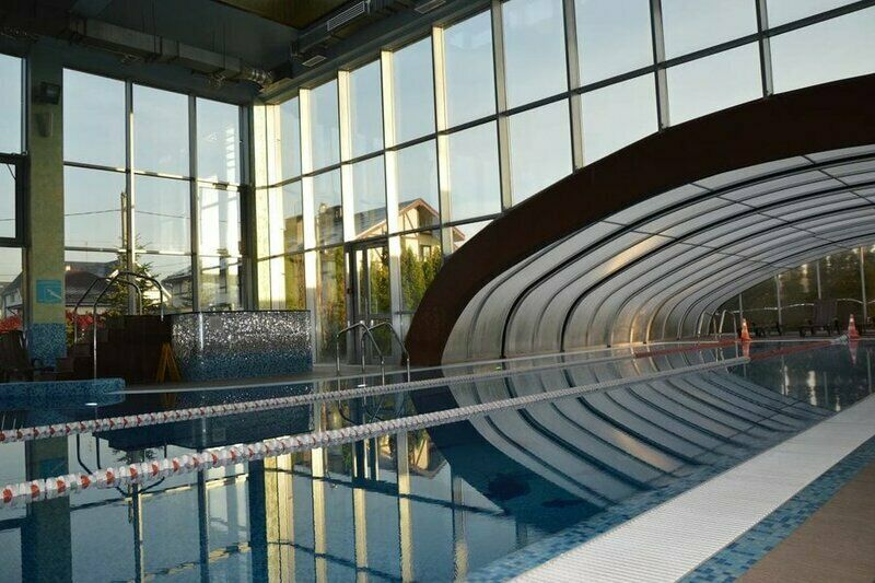 Читать полностьюБассейн с несколькими плавательными дорожками и отдельной гидромассажной зоной с противотоками. Имеются также два гидромассажных джакузи. У бассейна есть открытая и закрытая зоны. Когда температура воздуха на улице достигает 25 градусов, над бассейном поднимают крышу–трансформер.