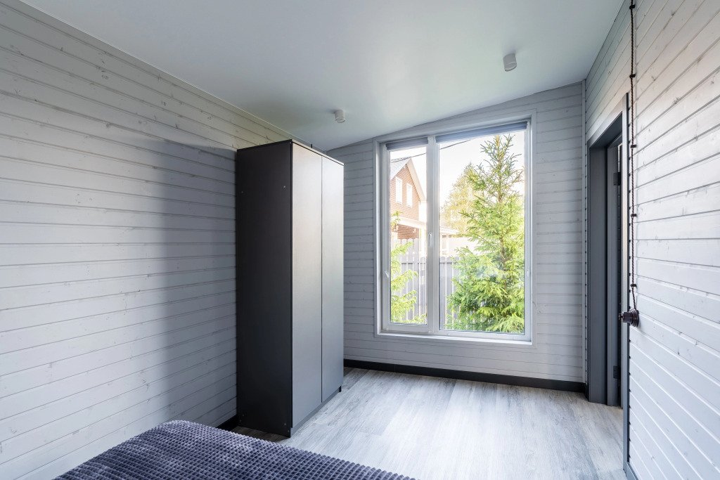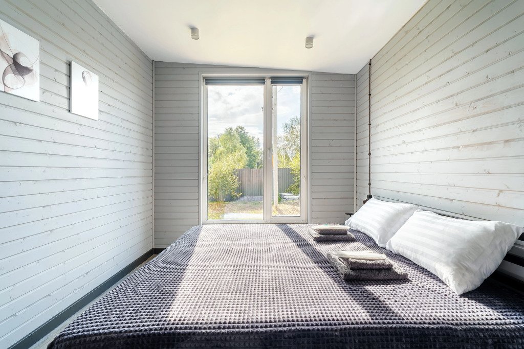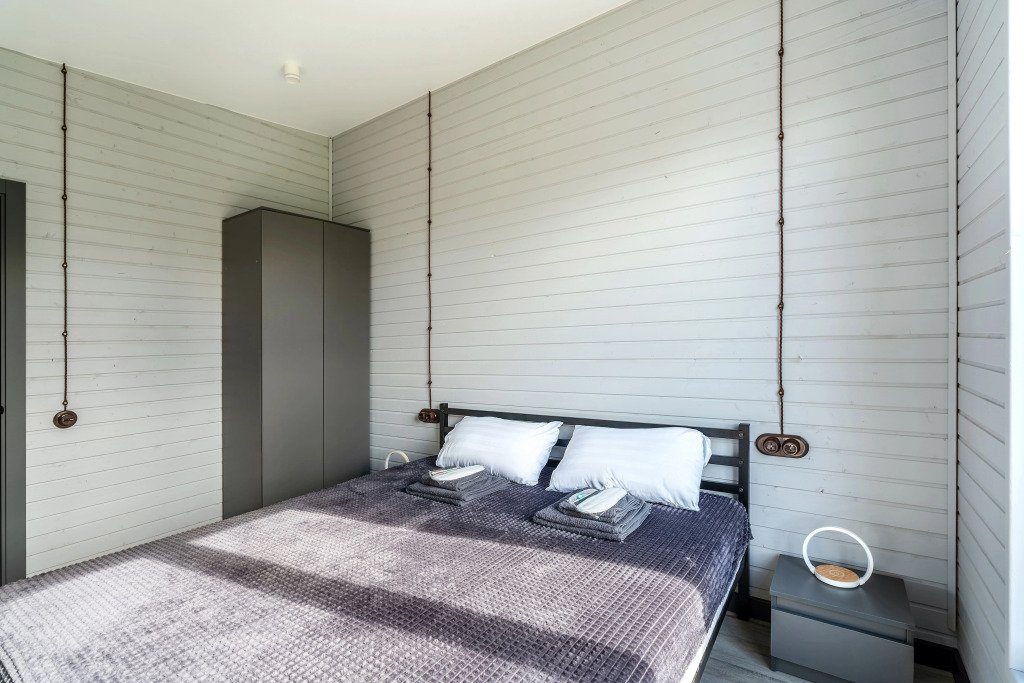 В доме: три спальни с кроватями 200х200 и двухместный диван в гостиной, шкафы с полками и вешалками, гостиная с кухней и обеденной зоной. Кондиционер.