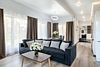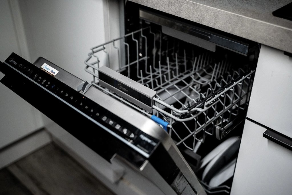 Кухня оборудована духовым шкафом, микроволновой печью, посудомоечной машиной, холодильником, чайником, посудой и необходимой утварью для приготовления пищи.