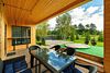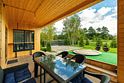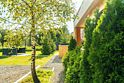 На территории: мангальная зона с принадлежностями, уголь предоставляется за дополнительную плату, бассейн, батут для детей, терраса c двумя чанами холодная и горячая вода, диван, два стола и 6 стульев.