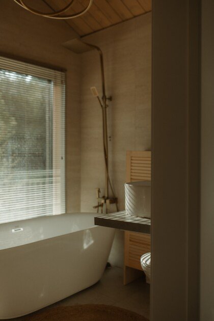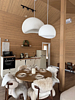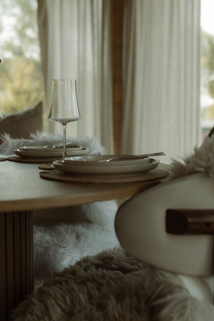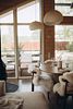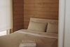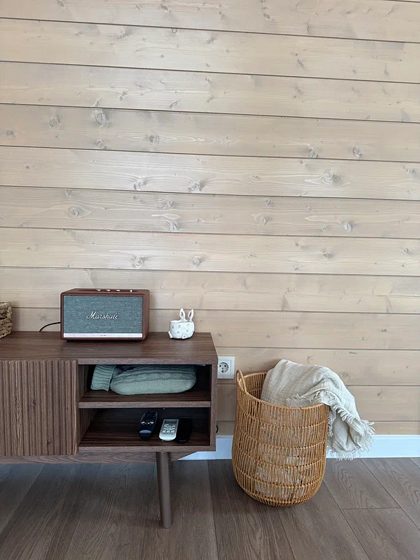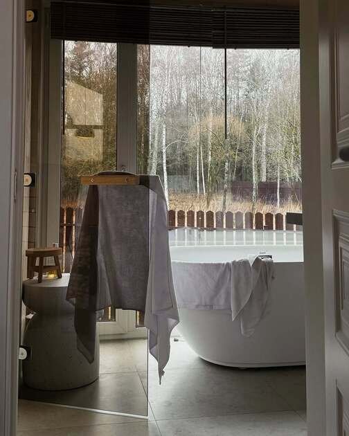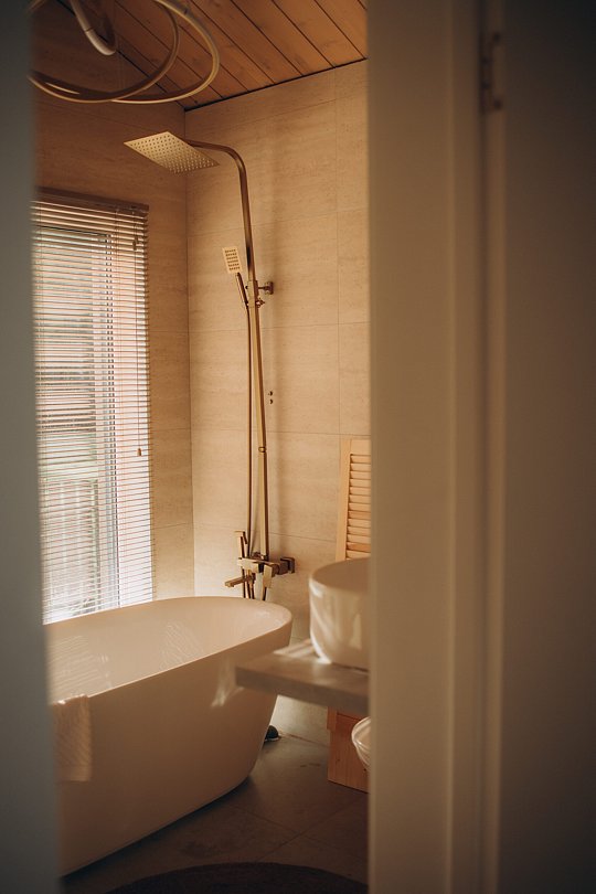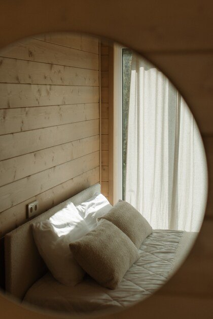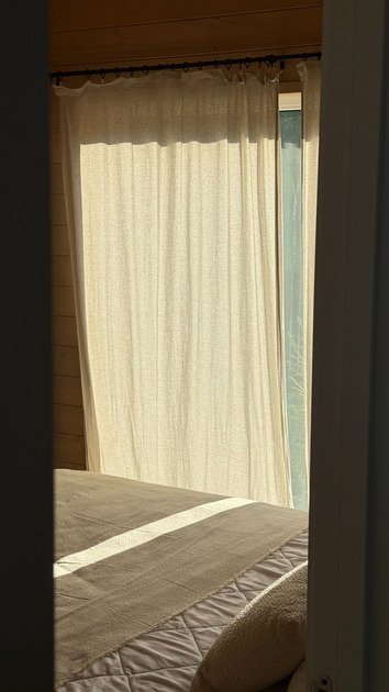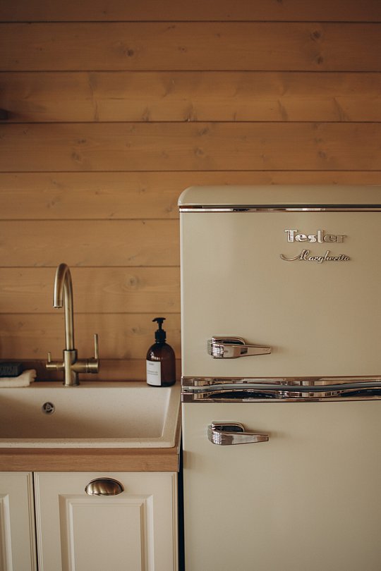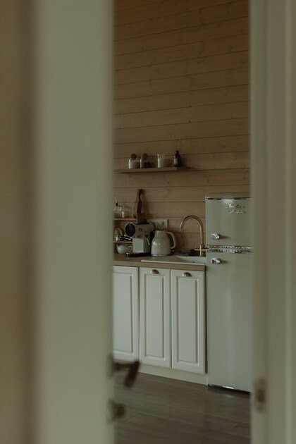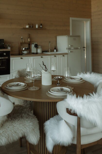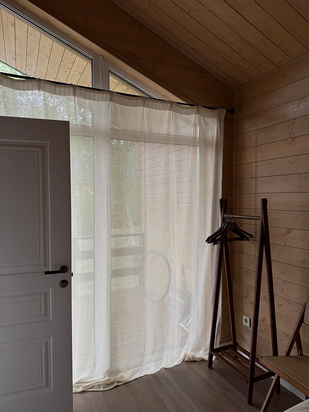 Внутренняя обстановка сочетает в себе современность и домашний уют. Две просторные спальни обеспечивают комфортные условия каждому гостю. Просторная кухня-гостиная оснащена всеми необходимыми приборами и посудой, позволяя приготовить блюда на любой вкус. Особое внимание привлекает панорамная ванна с видом на лес и стильный электрический камин, создающие атмосферу тепла и расслабления. Для отдыха предусмотрены проектор и акустическая система Marshall, обеспечивающие незабываемые впечатления от просмотра фильмов или прослушивания музыки.