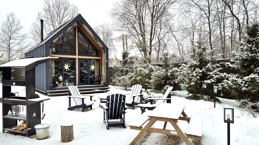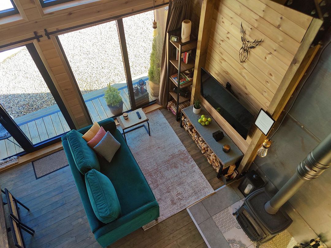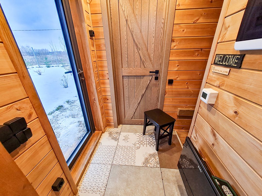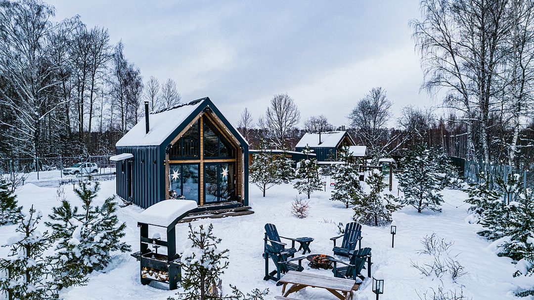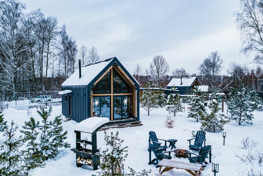 Домики выполнены в стиле барнхаус и рассчитаны на 4 человек. Они находятся на охраняемой, огороженной территории, где нет соседей, всего в 200 метрах от берега водохранилища. Заселение можно осуществить без контакта в любое удобное время.