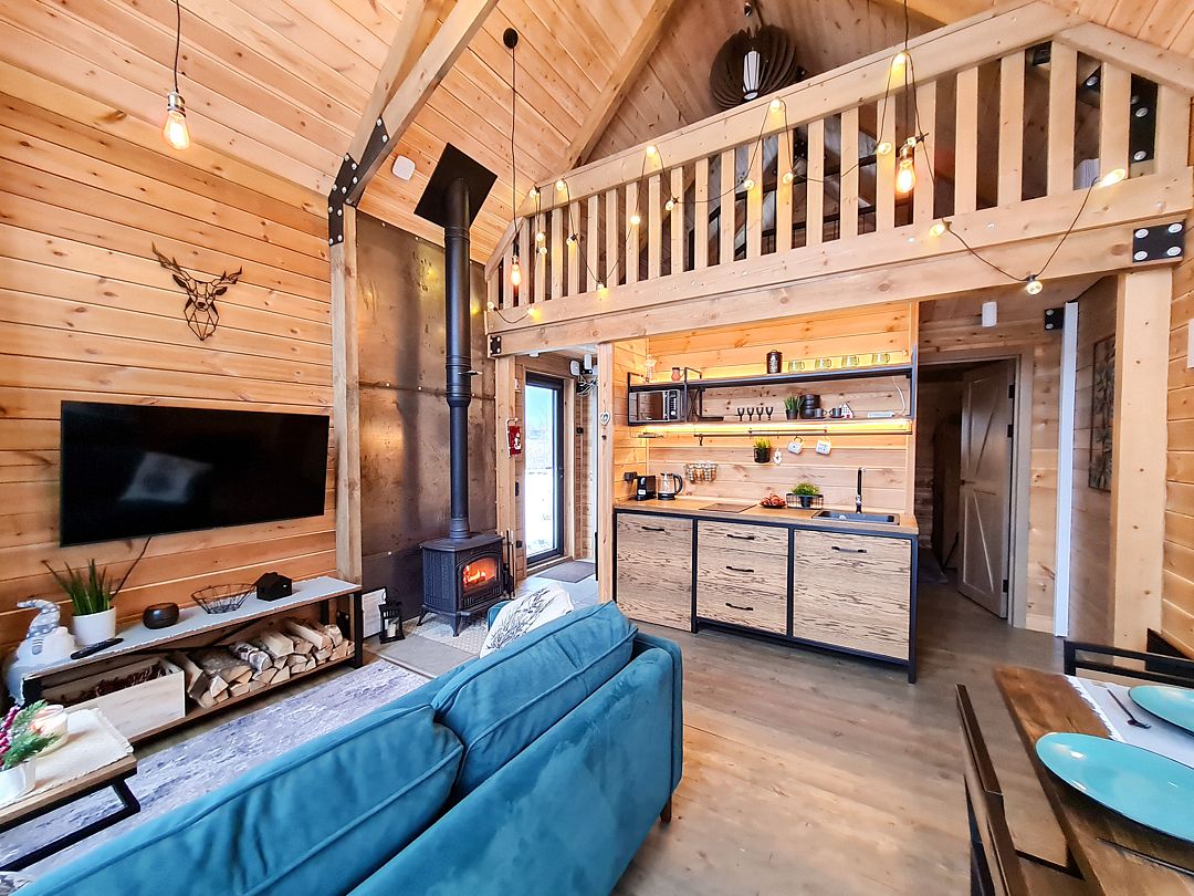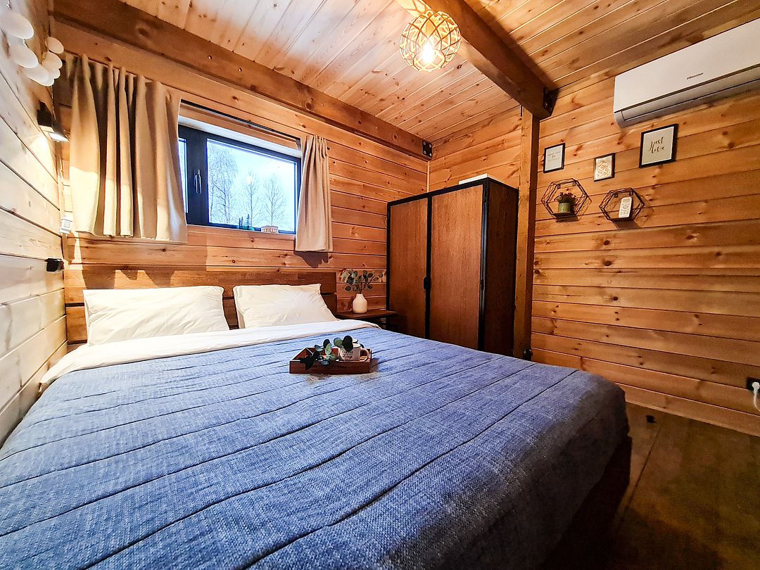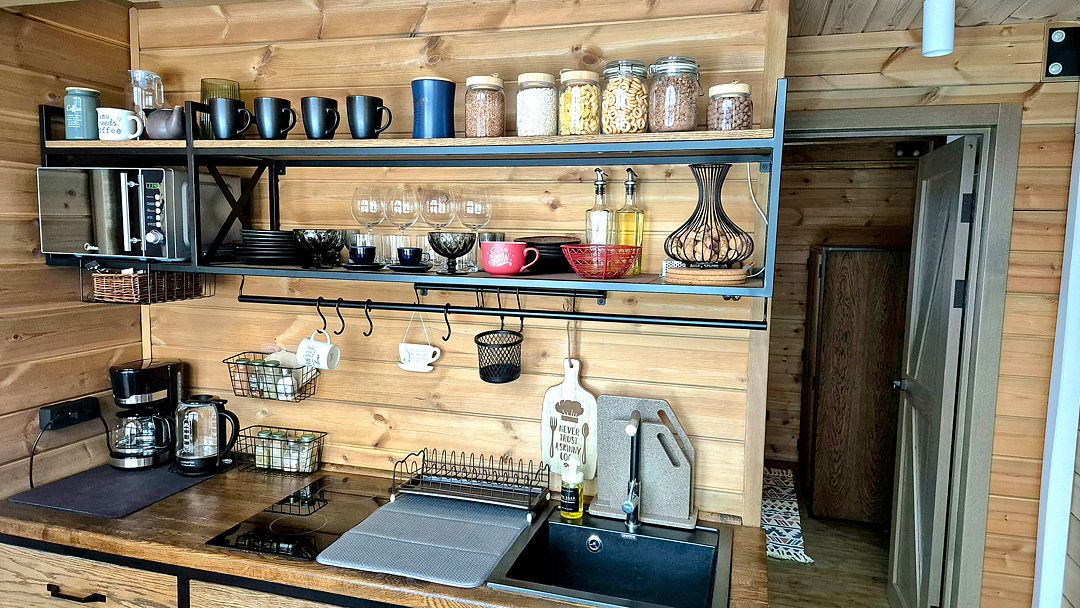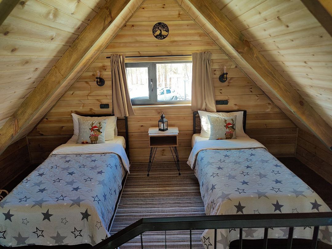 Домики выполнены в стиле барнхаус и рассчитаны на 4 человек. Они находятся на охраняемой, огороженной территории, где нет соседей, всего в 200 метрах от берега водохранилища. Заселение можно осуществить без контакта в любое удобное время.
