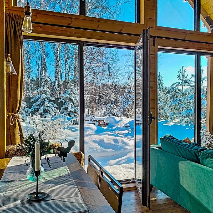 Для отдыха гостей есть Wi-Fi, камин и приватная зона для барбекю с мангалом, костровой чашей и удобными креслами. В летний сезон можно наслаждаться прогулками по лесу, лыжами, велосипедами, а также купанием и катанием на лодках.